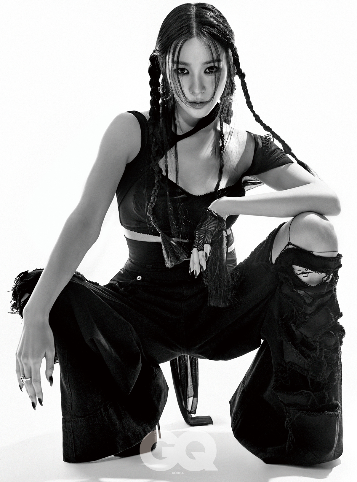 올블랙에 땋은 머리로 유니크함을 더한 스타일링에 당당함이 느껴지는 포즈는 모두의 시선을 단번에 사로잡는다