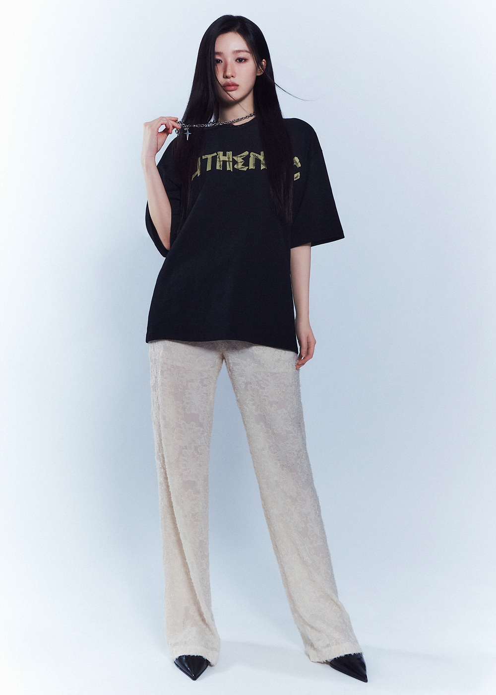 그리고 빈티지하게 작업된 로고 아트웍 그래픽이 들어간 꼴라쥬 그래픽 셔츠들을 착용해 올 여름 데일리룩을 완성했다