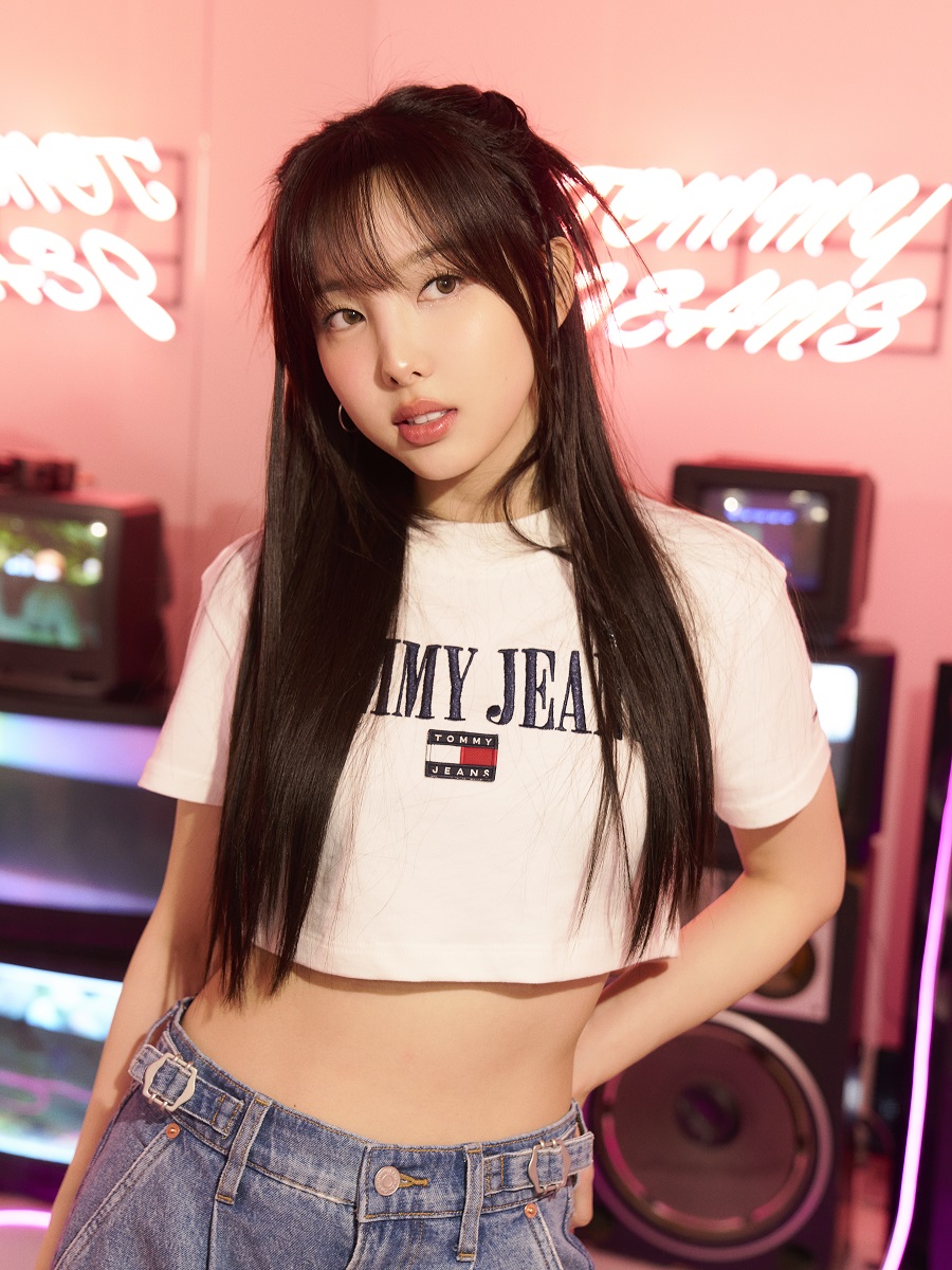 볼드한 타미 진스 로고 자수로 포인트를 준 크롭 티셔츠에 와이드 데님 팬츠를 매치해 그녀만의 독보적인 데님 스타일링을 선보이며 자리를 빛냈다