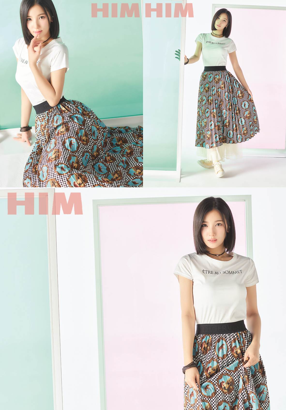 첫 번째 사진에서부터 크롭 반팔 티셔츠와 프린트 플리츠 스커트를 멋스럽게 소화한 소희가 한눈에 들어온다. 카리스마 가득한 눈빛으로 카메라를 응시하며 ‘걸크러시 아우라’를 발산해 앞으로 무대위에서 당당하고 강단 있는 활동을 펼칠 모습을 미리 만나본 듯 하다.