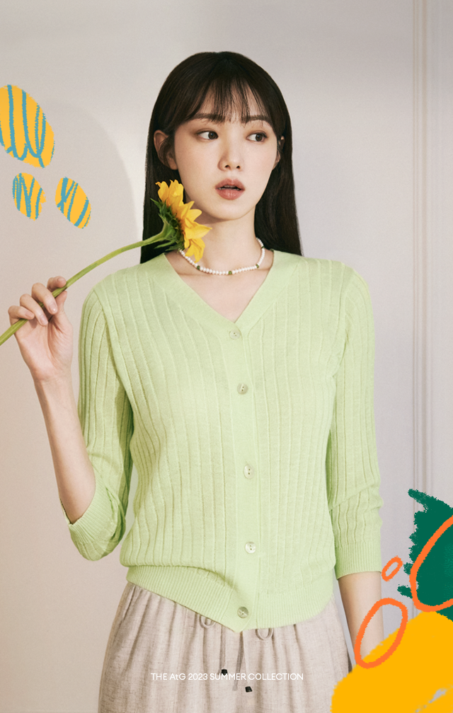 이성경은 여름의 청량함을 느낄 수 있는 컬러감과 소재의 더엣지