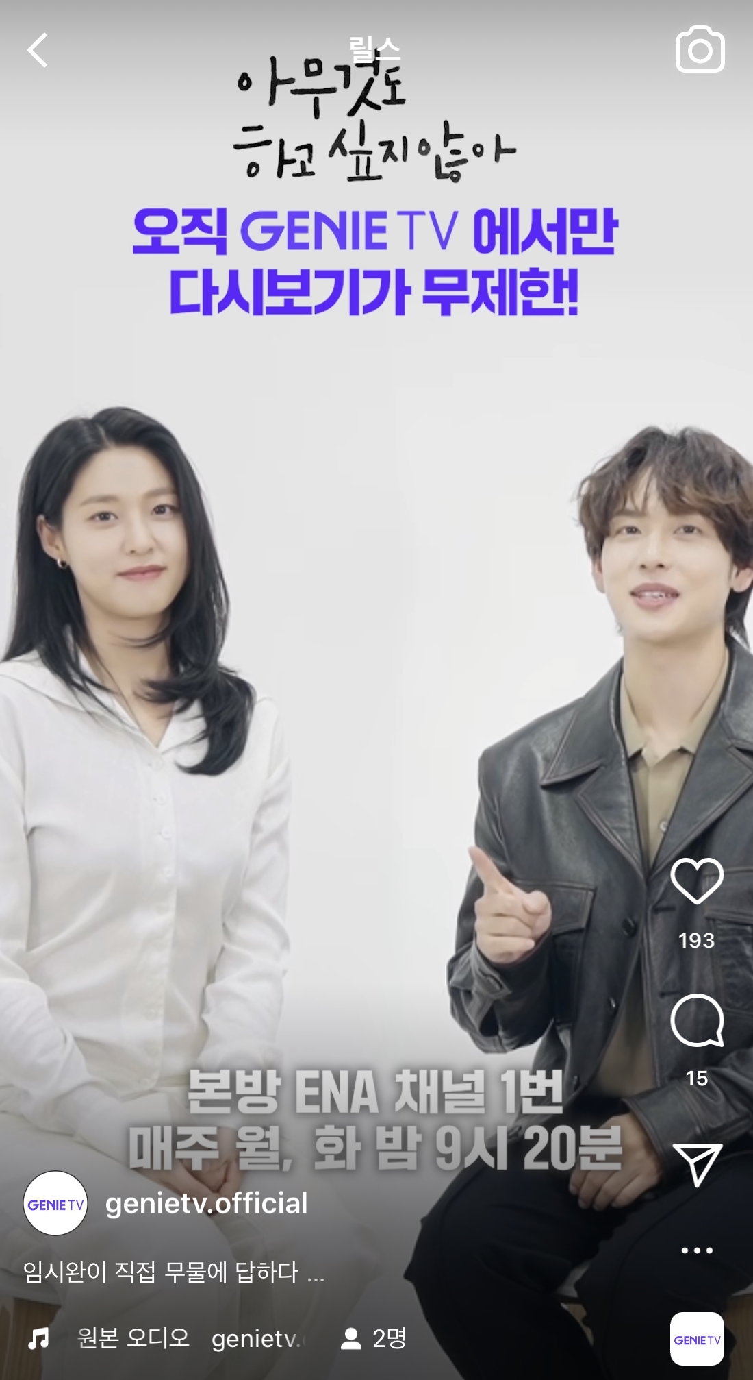오리지널 드라마 ‘아무것도 하고 싶지 않아’의 주연 배우가 참여한 무물 영상이 공개됐다