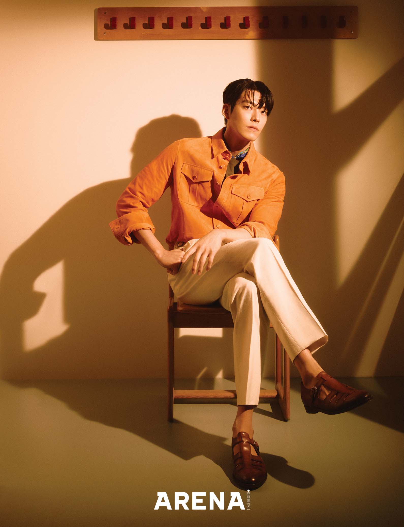 김우빈은 이번 화보를 위해 랄프 로렌 퍼플 라벨을 입고 카메라 앞에 섰다