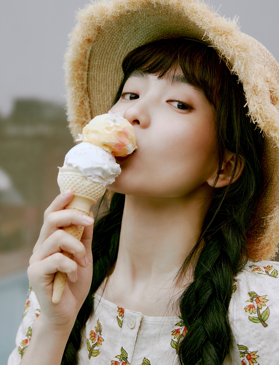 아이스크림이나 비치볼 등 다양한 여름성 소품을 활용하여 그녀만의 자연스러운 매력이 돋보이는
