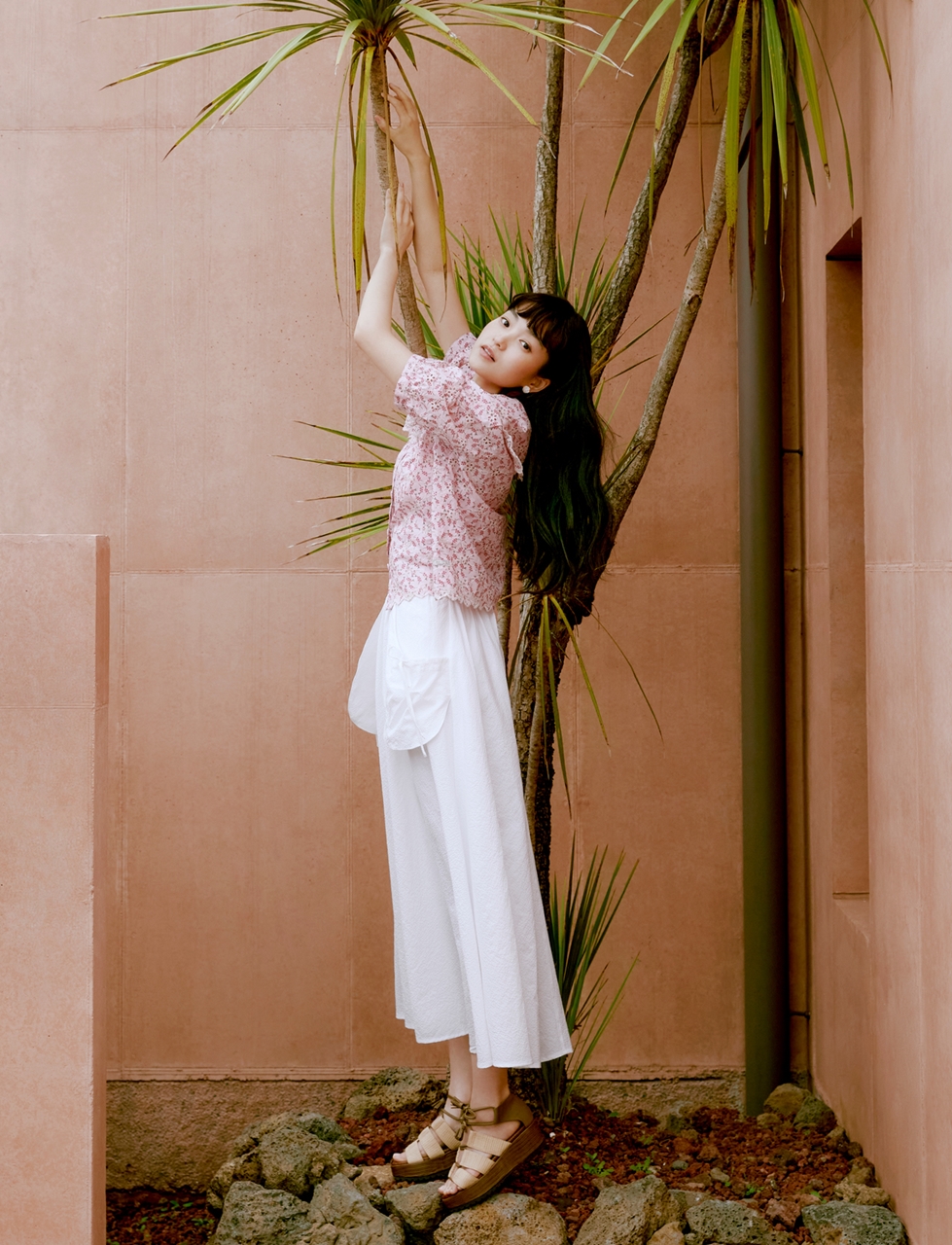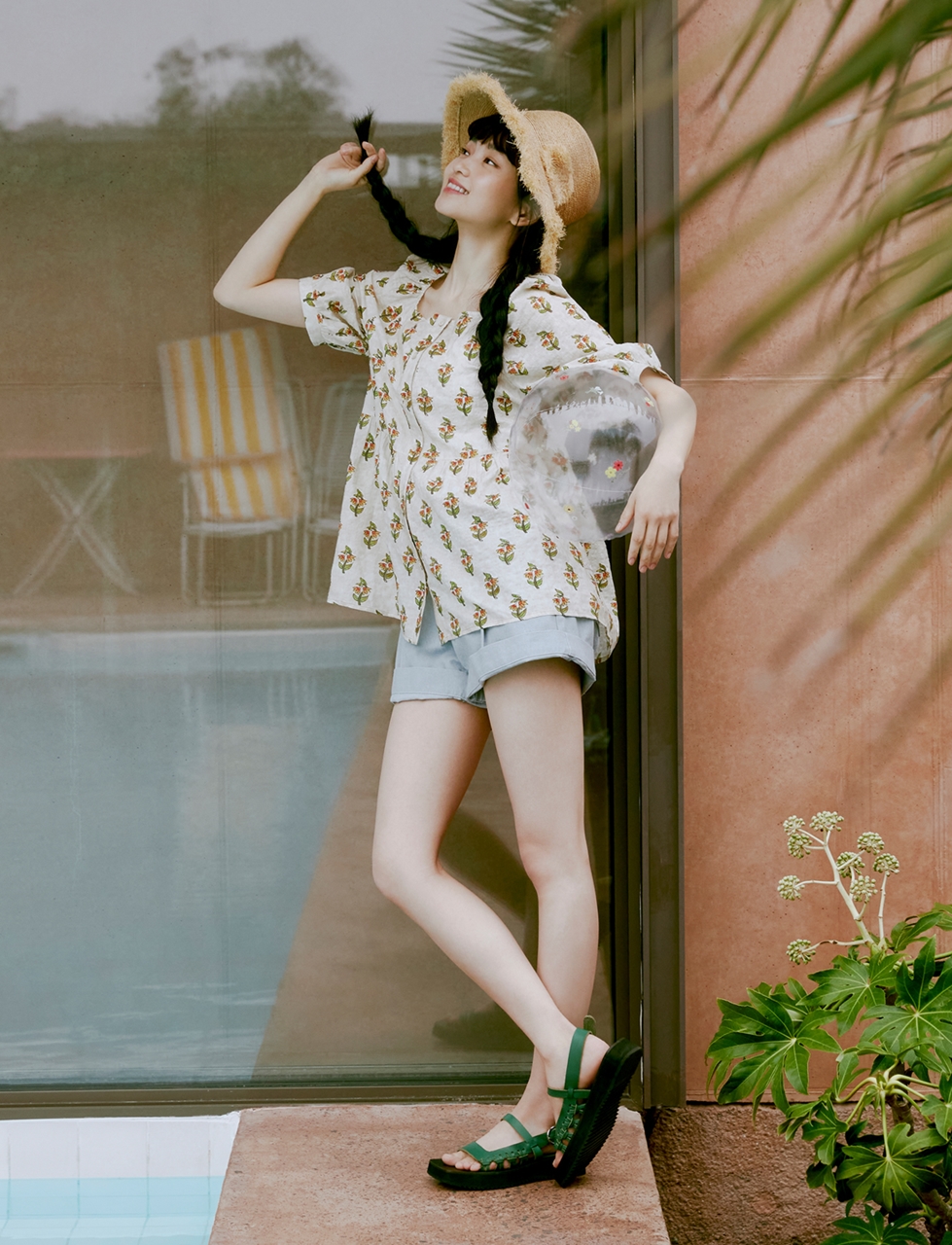 기분 좋은 여름 휴양지 스타일링을 브랜드 무드에 맞게 해석해 로맨틱하지만 경쾌하게 제안하며 그녀만의 기분 좋은 에너지와 시너지 효과를 내