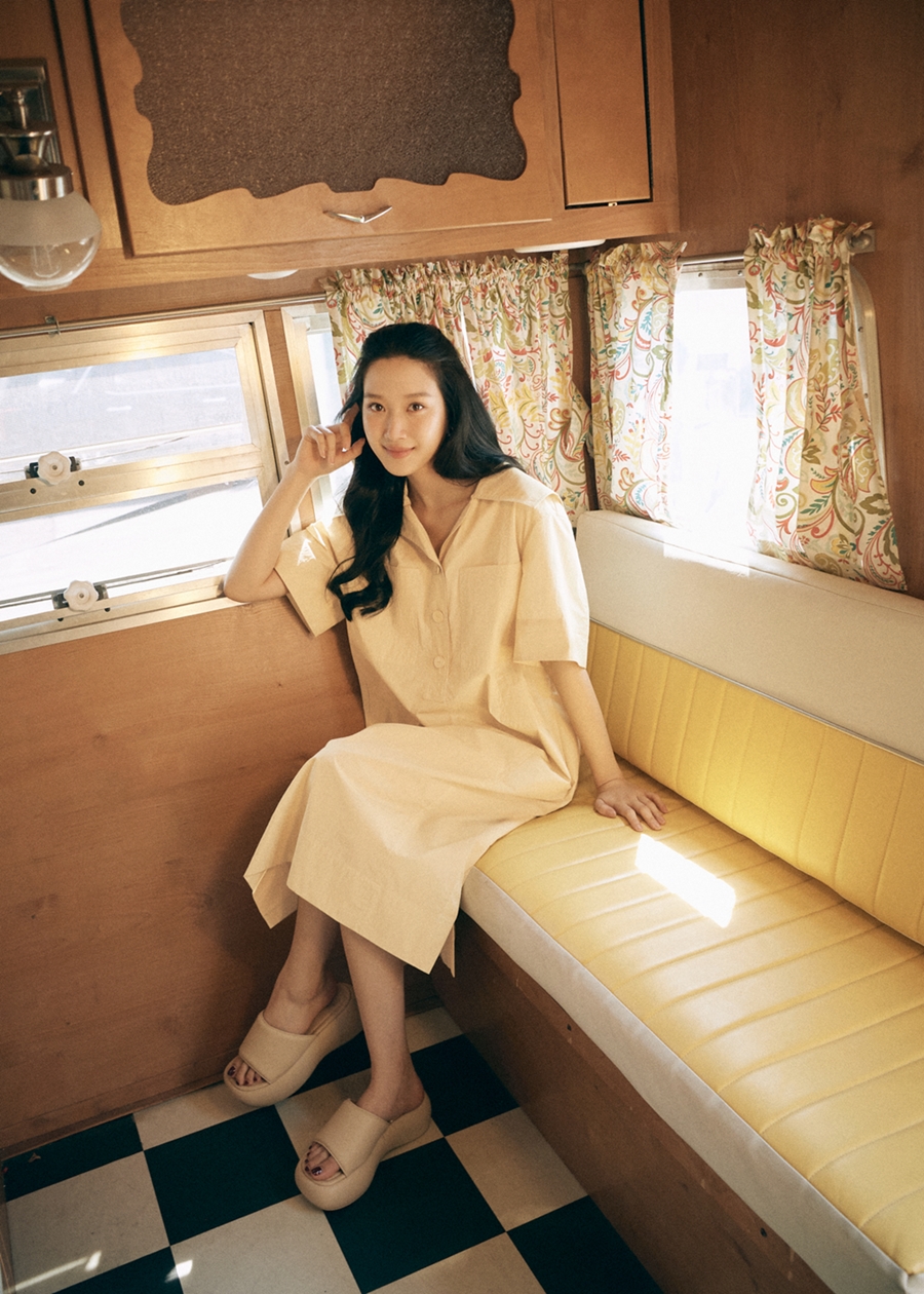 특히 산뜻한 무드의 셔츠 원피스를 입고 편안하게 카메라를 응시하는가 하면