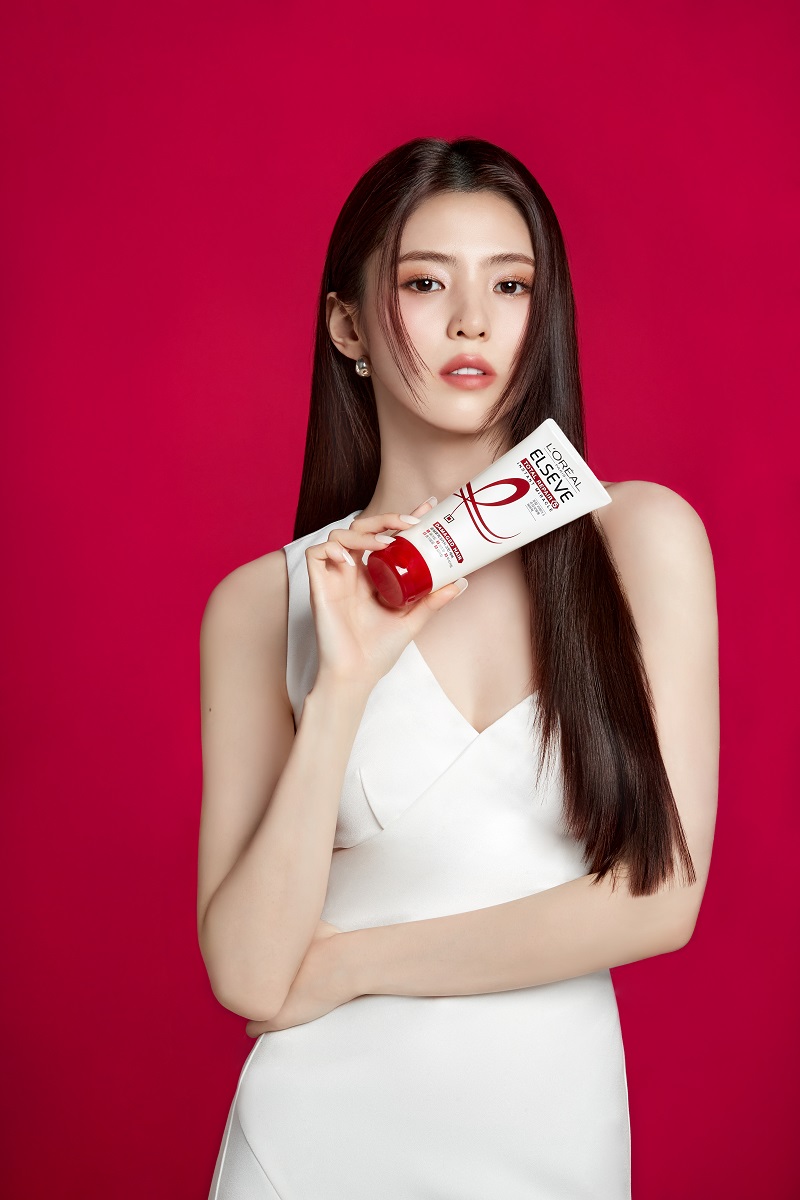 한소희의 아름다움을 더욱 돋보이게 해준 부드러운 머릿결은 로레알파리의 대표 헤어팩 제품 ‘토탈리페어5 인스턴트 미라클 헤어팩’으로 완성됐다.