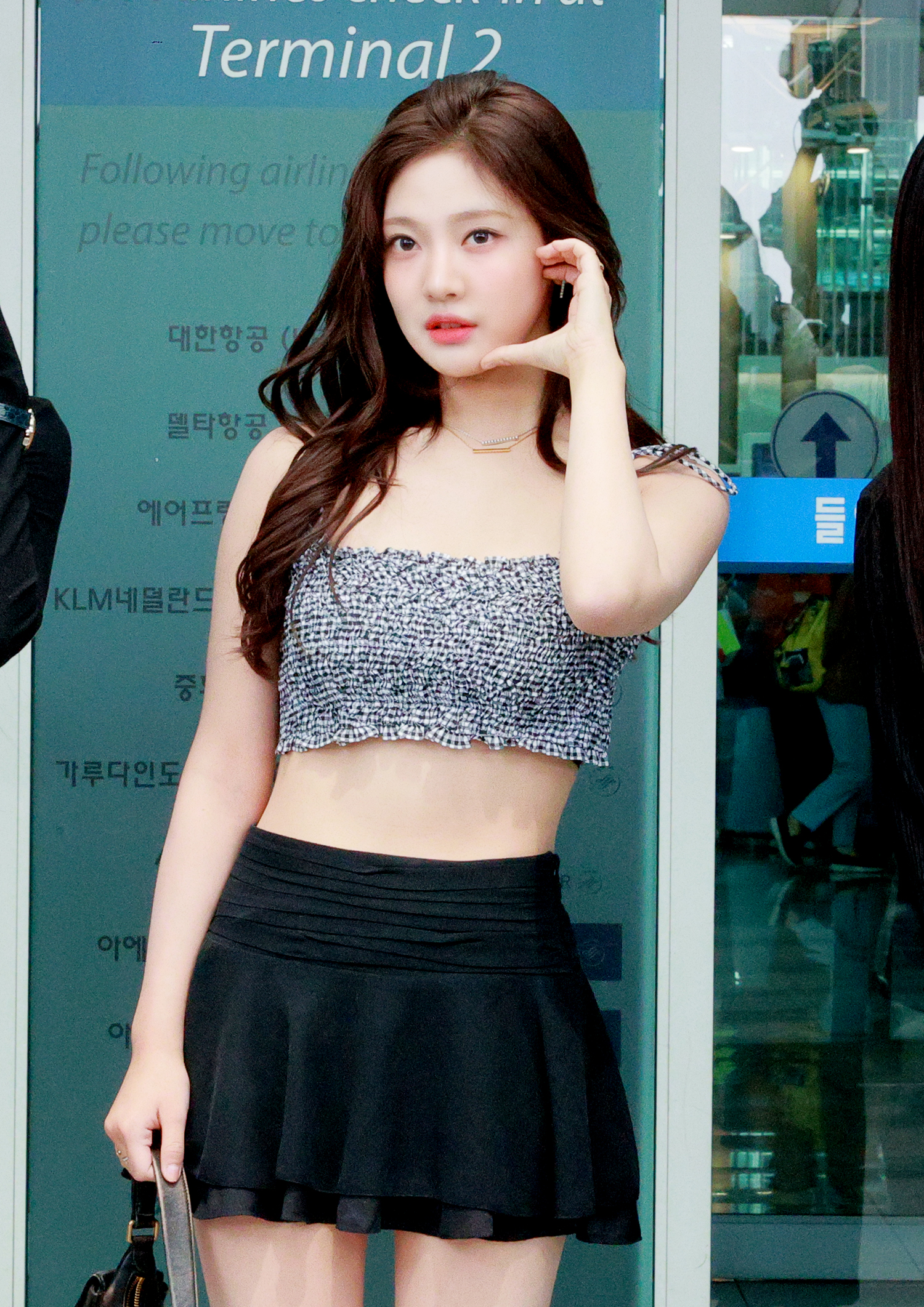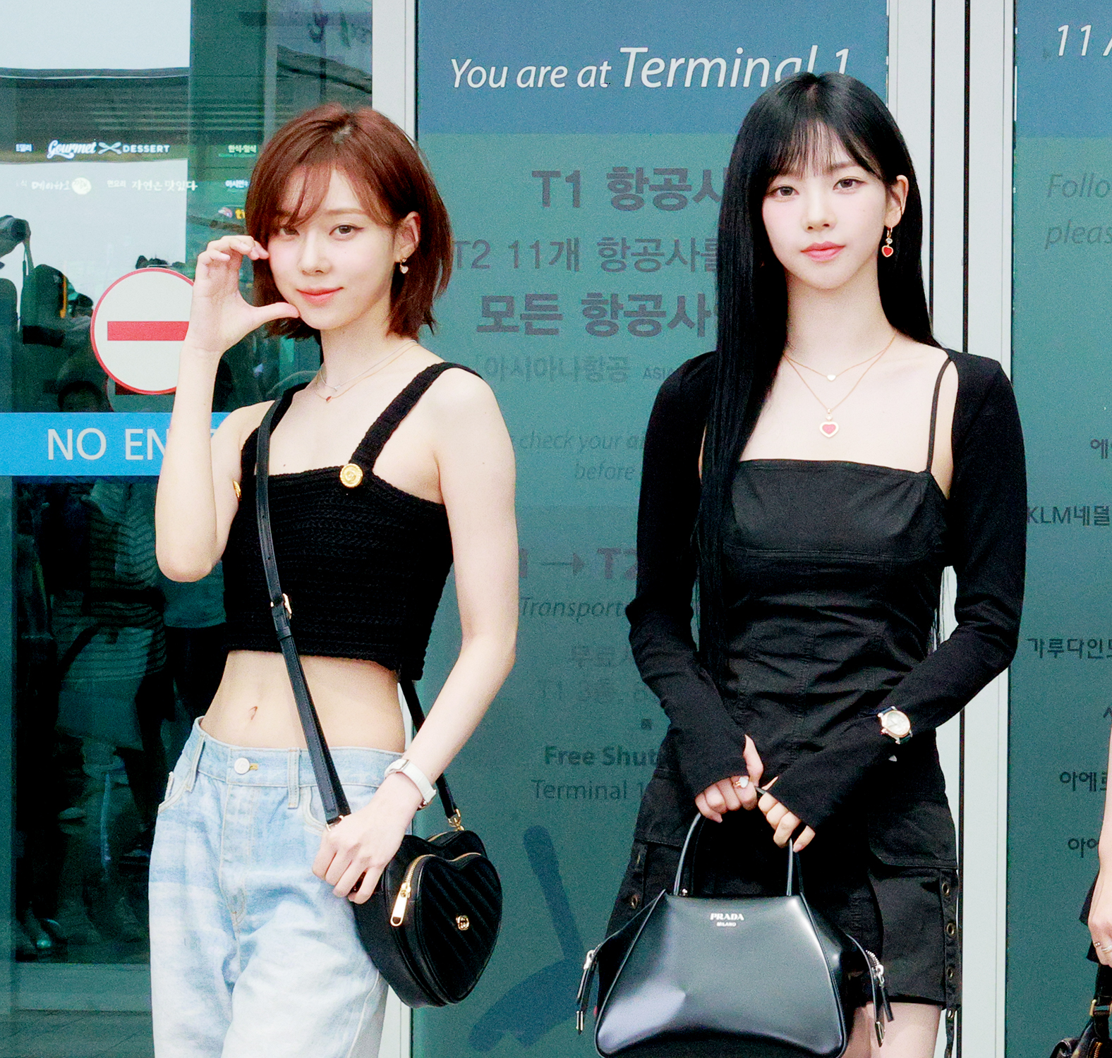 닝닝과 윈터는 크롭톱에 주얼리 스타일링으로 핫한 썸머 룩을 연출했다