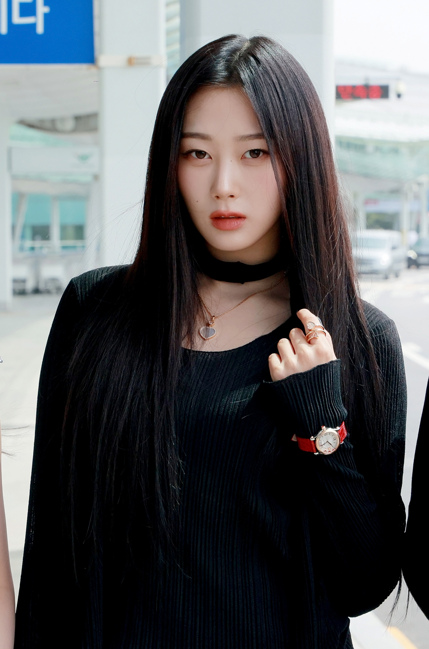 카리나와 지젤은 블랙 룩에 워치