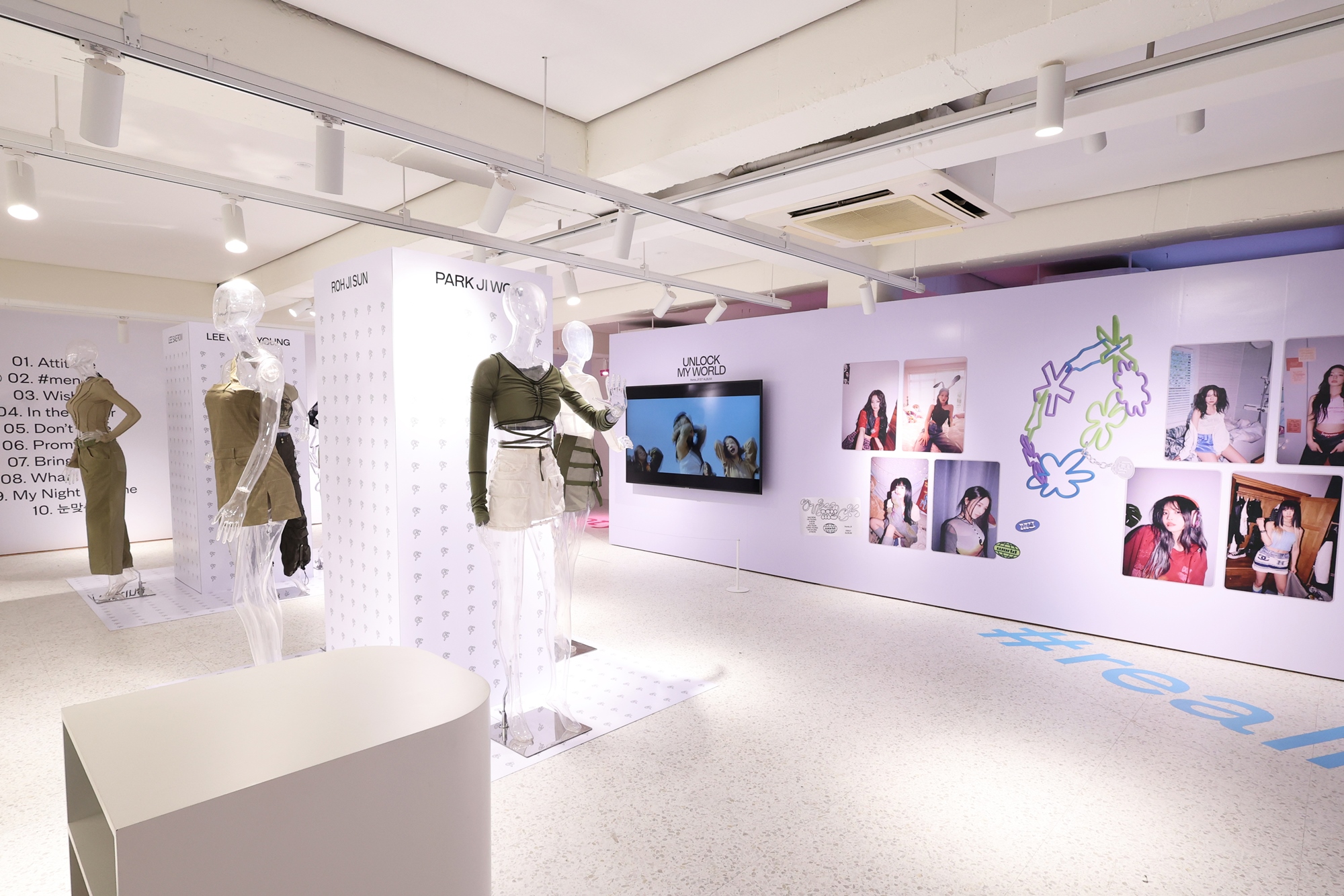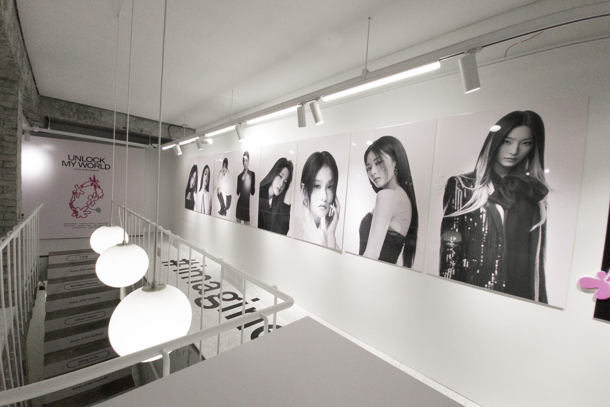 이번 팝업 스토어는 프로미스나인의 정규 1집 ‘Unlock My World’ 메시지와 콘셉트를 연계한 공간과 공식 상품으로 꾸려졌다. 총 100평 규모로 이뤄진 건물의 외벽 창은 프로미스나인 ‘not yet’ 버전 오피셜 포토로 래핑됐고 그 밖에 공간 곳곳에는 정규 1집 오피셜 포토와 메인 콘셉트 아트웍이 전시됐다.