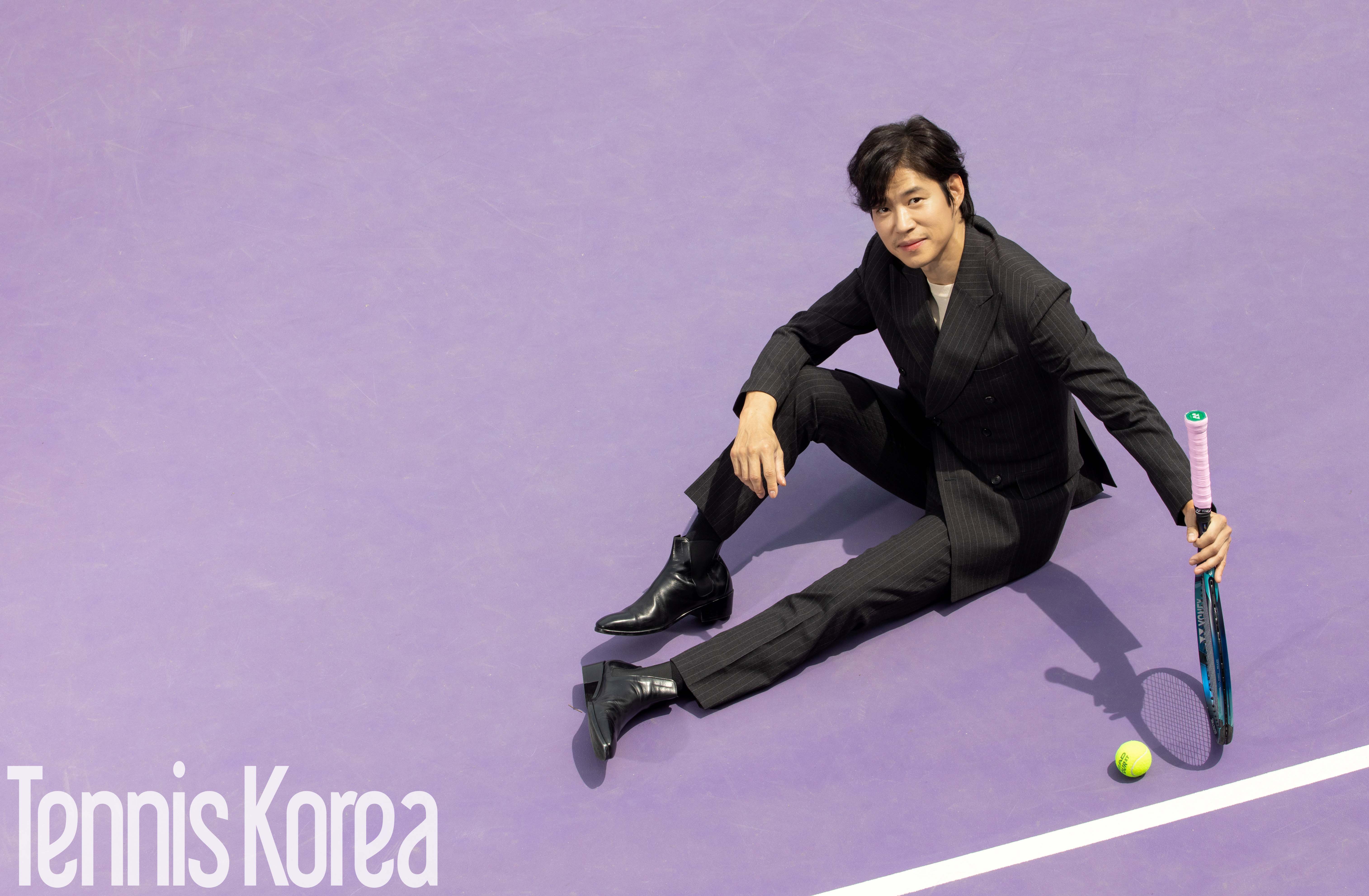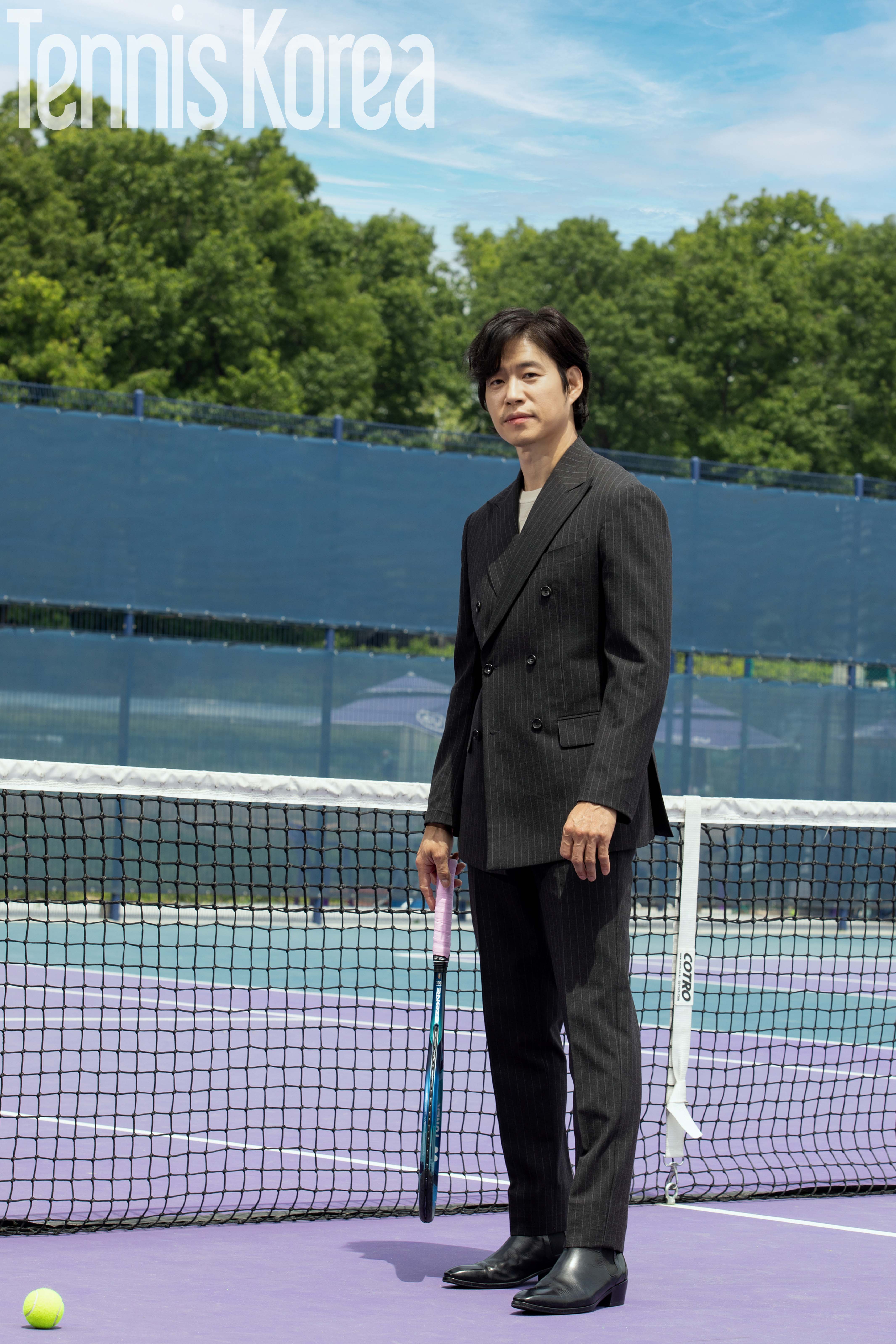 화보 속 유준상은 테니스 코트를 배경으로 클래식한 수트 컷에선 여유로운 표정을 지으며 노련미를 뽐내는가 하면