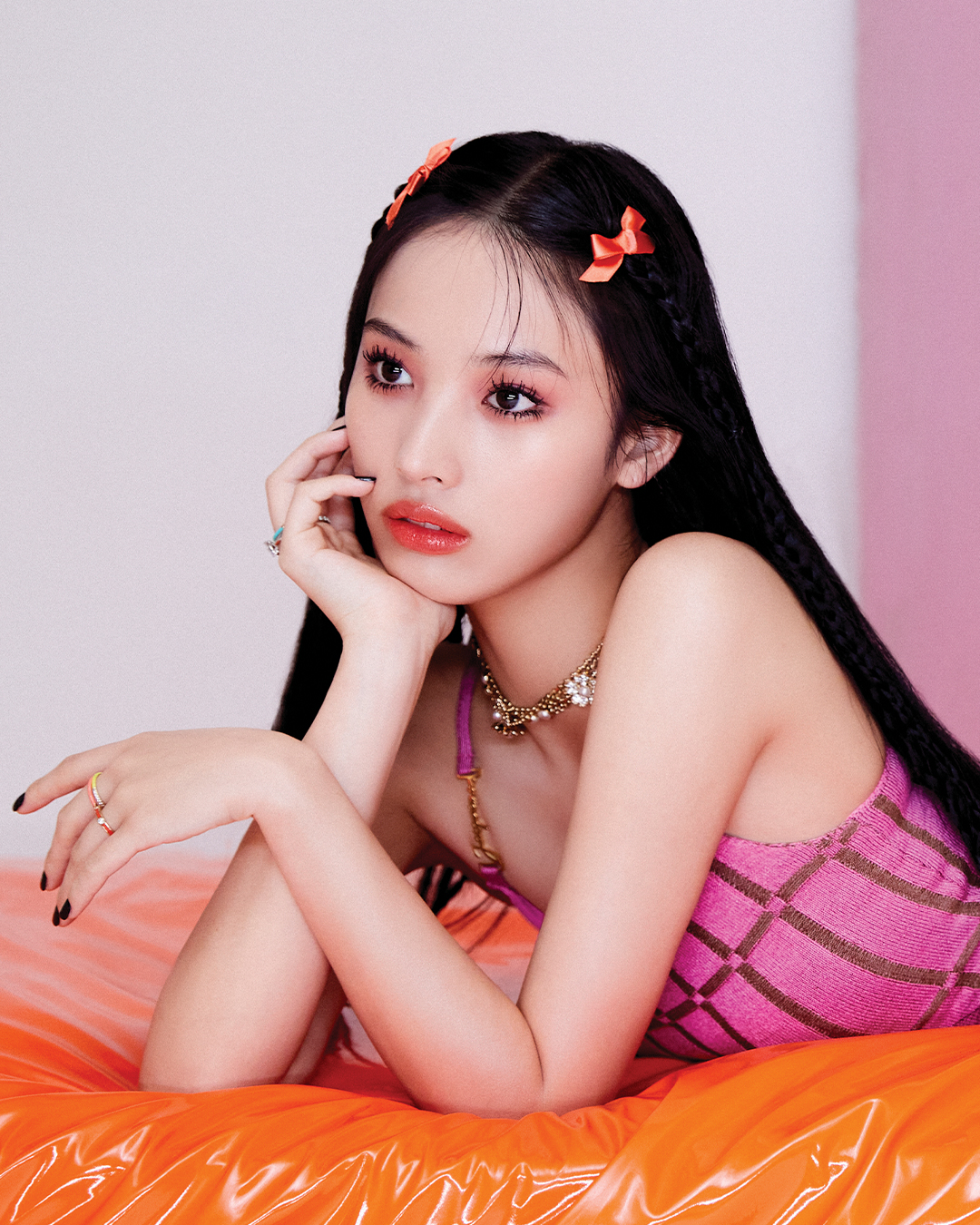 은 라이트 핑크 베이지 컬러로 시크하고 매혹적인 뉘앙스를 자아냈다