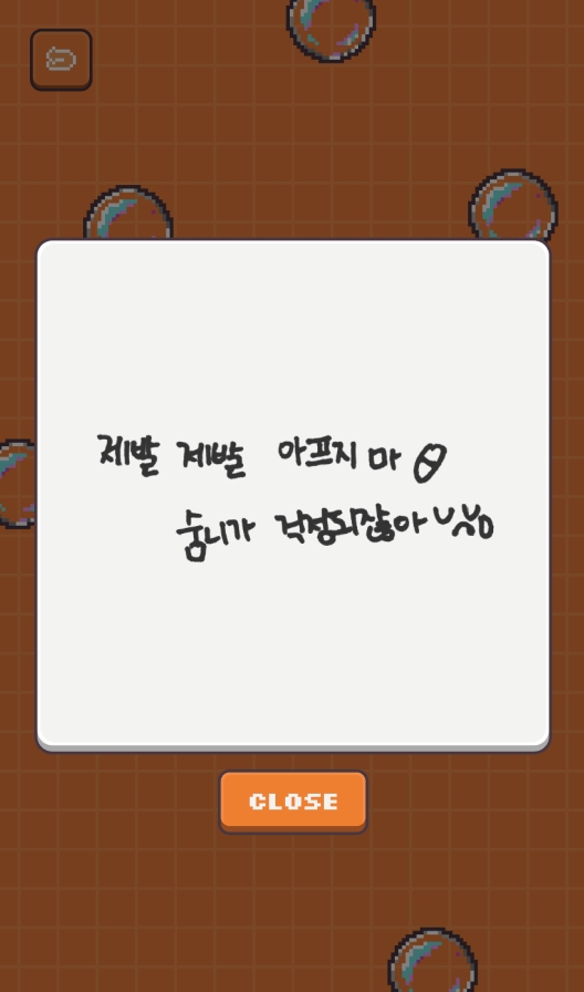 떠오르는 버블을 터치해 터트리면 랜덤으로 여섯 멤버 중 한 명의 손글씨 또는 그림이 공개된다