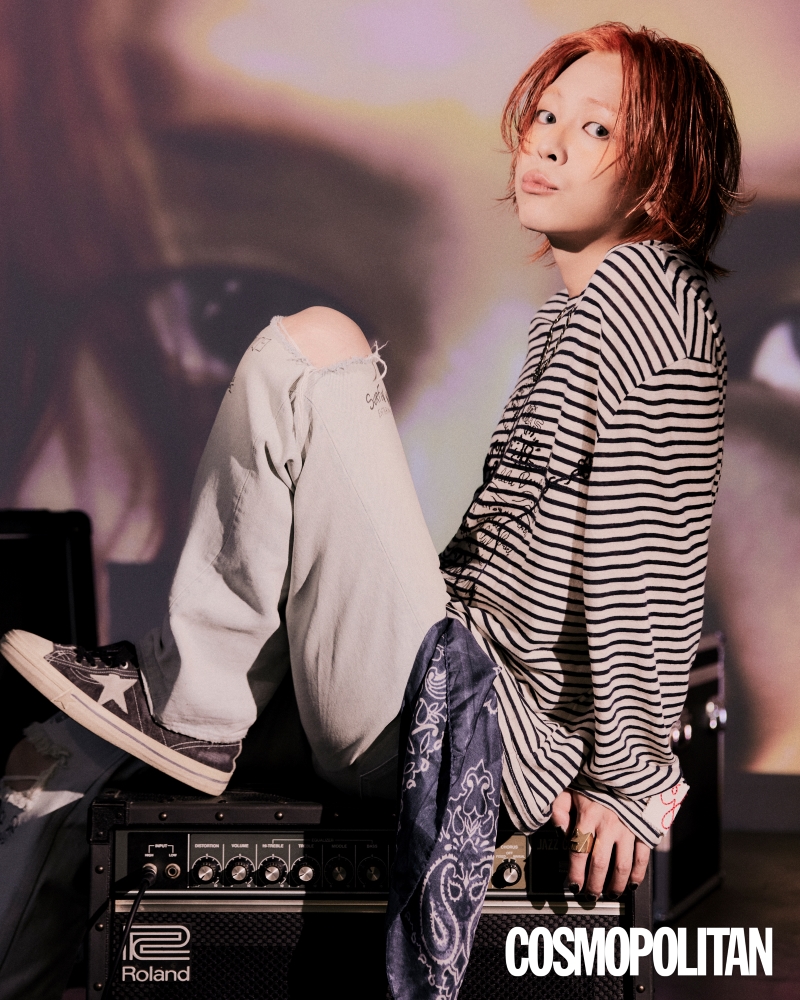 년대에서 영감을 받은 캐주얼한 스타 컬렉션에 골든구스의 아이코닉한 스니커즈 와 앤틱한 액세서리까지 다양한 아이템을 적절히 믹스 매치해 그만의 독보적인 비주얼로 소화하며 화보 장인의 면모를 보여주었다