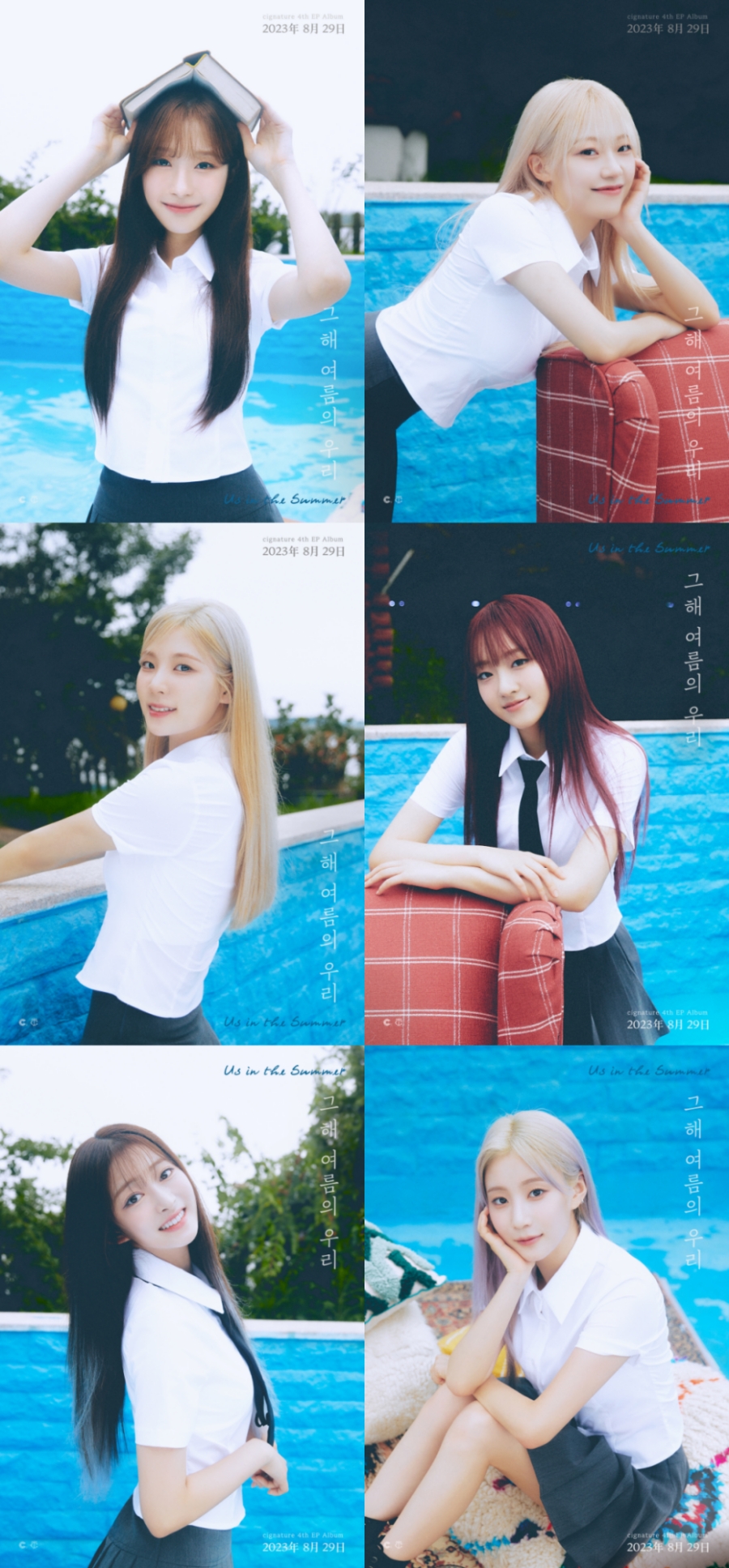 먼저 공개된 단체컷 속 시그니처는 교복을 입고 풋풋한 매력을 발산했다