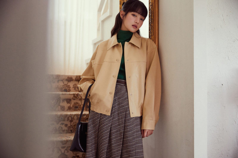 또한 캐주얼한 디자인의 블루종 디자인과 레더 소재로 세련된 분위기를 더한