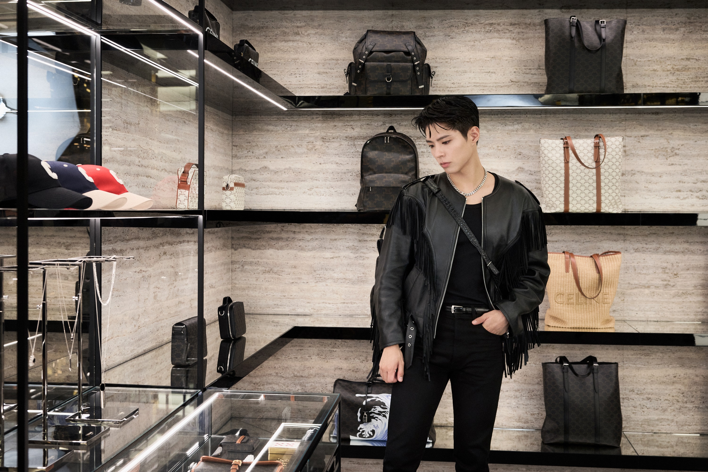 셀린느를 대표하는 배우 박보검과 방탄소년단 뷔가 일본 도쿄에 위치한 셀린느 오모테산도 스토어 리오프닝 행사에 참석했다