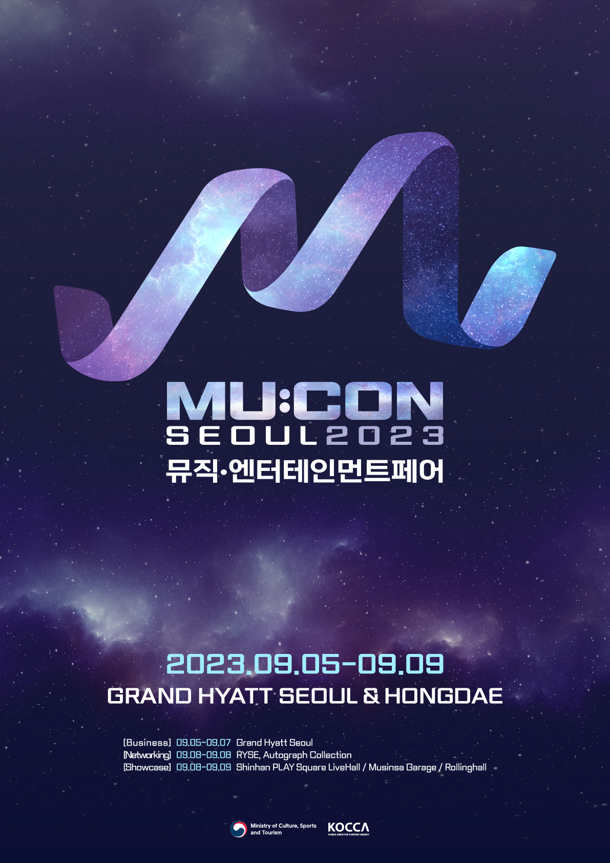 문화체육관광부(장관 박보균)가 주최하고 한국콘텐츠진흥원(원장 조현래, 이하 콘진원)이 주관하는 뮤직·엔터테인먼트 페어 ‘뮤콘 2023(MU:CON 2023)’이 오는 9월 5일부터 9일까지 5일간 서울 한남동과 홍대 일대에서 개최된다.