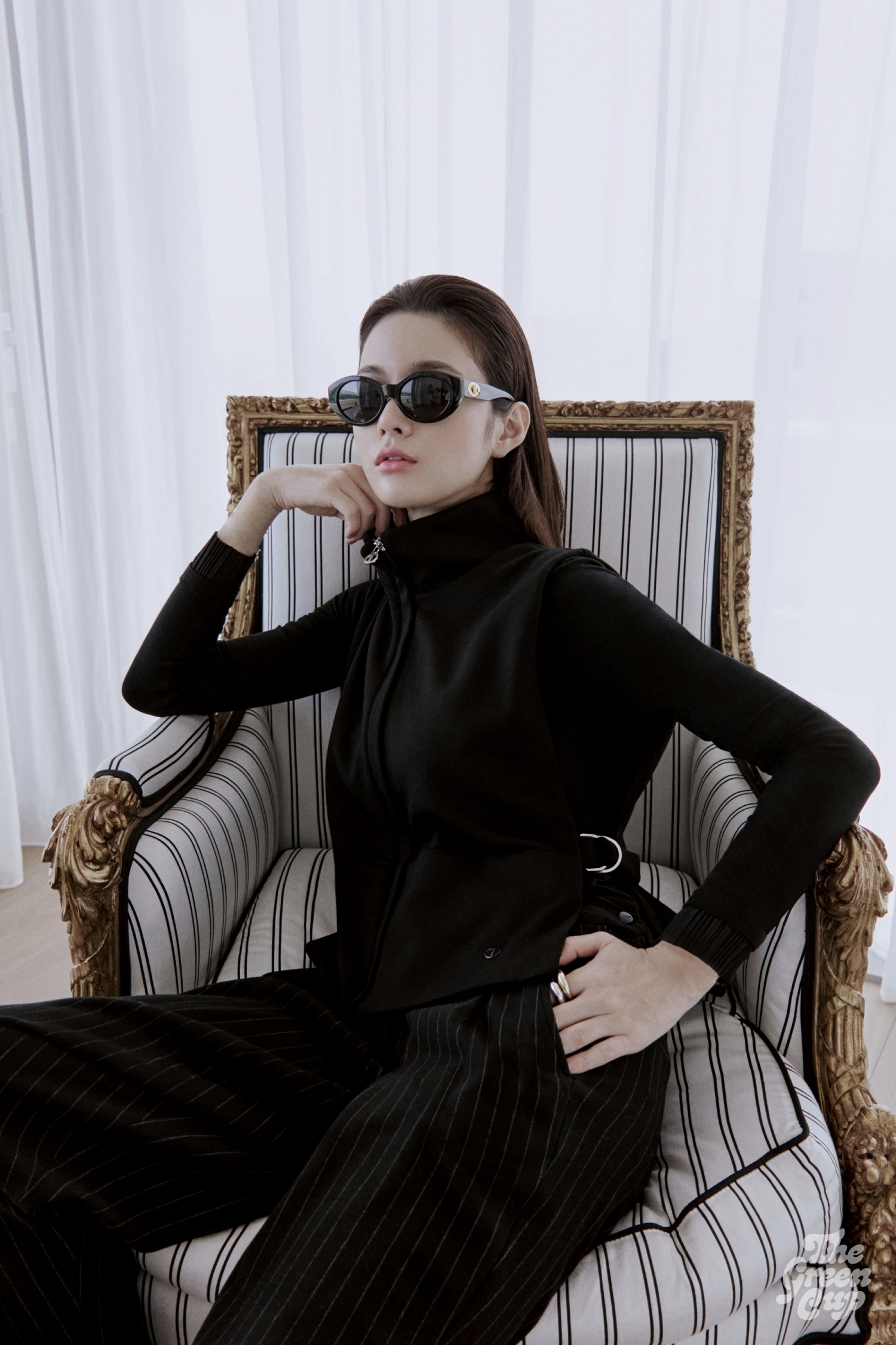 아이템을 함께 매치하여 클래식하면서도 시크한 무드의 스타일링을 완성해 눈길을 끈다