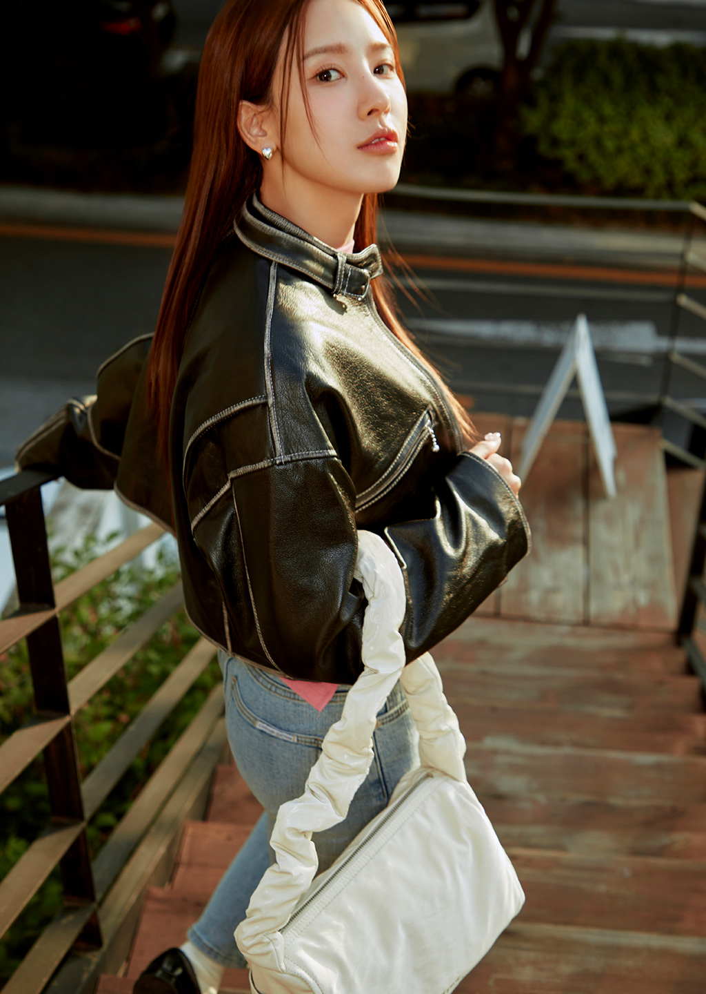 코듀로이 등 가을에 착용하기 좋은 스타일링과 함께 글로시 한 백을 연출해 포인트 스타일링의 정석을 선보이는가 하면