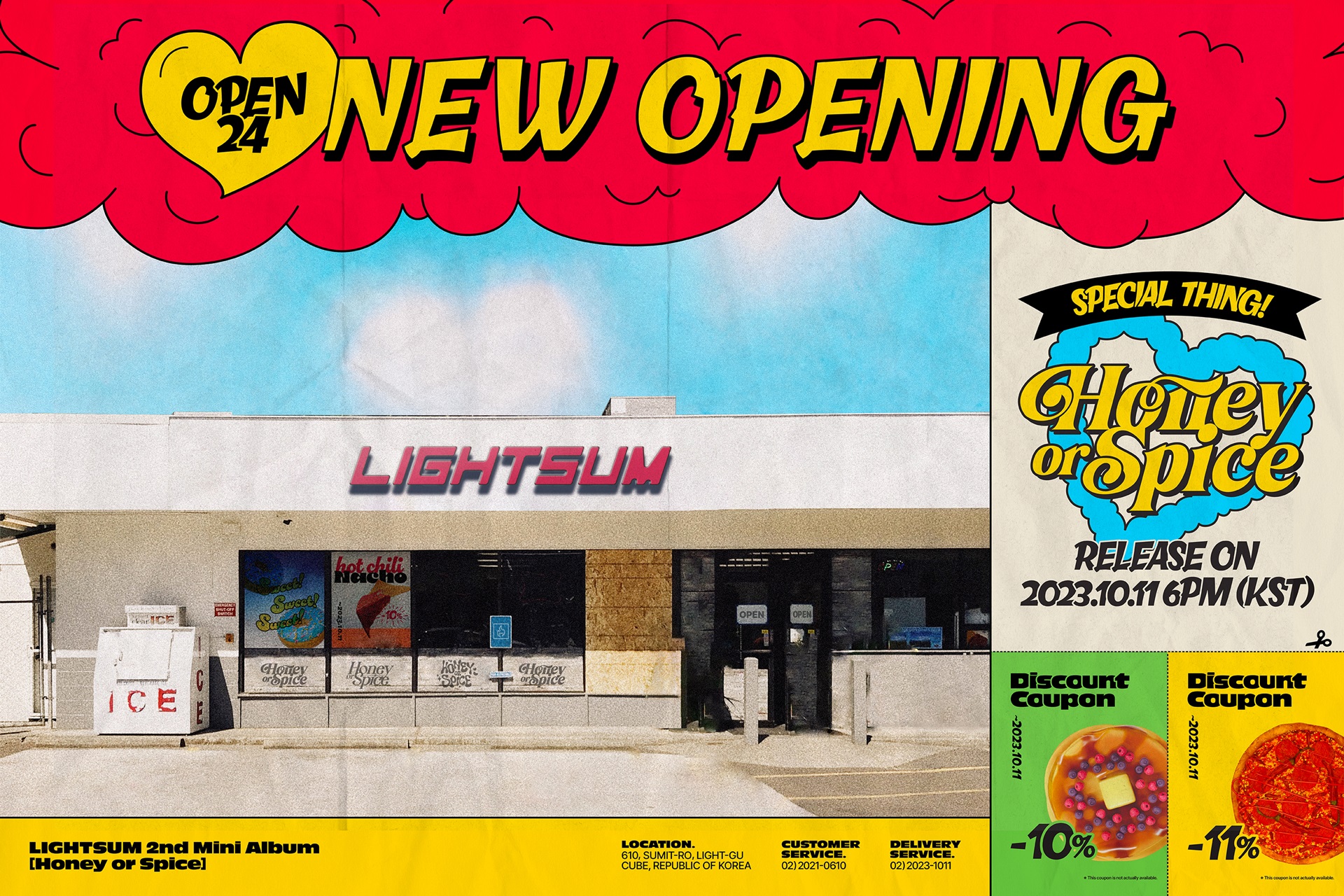 특히 대형 마트 외관에 상호명 대신 자리 잡은 LIGHTSUM의 네임 로고, 절취용 쿠폰에 할인율로 암시된 발매 일자, ‘NEW OPENING’ 등의 문구를 통해 마치 세일즈 전단과 같은 배치로 컴백 정보를 전하는 독특한 아트워크 티저가 공개되자 팬들의 뜨거운 반응이 이어지고 있다.