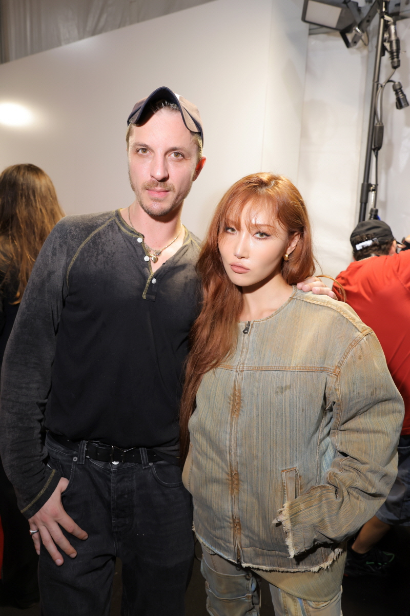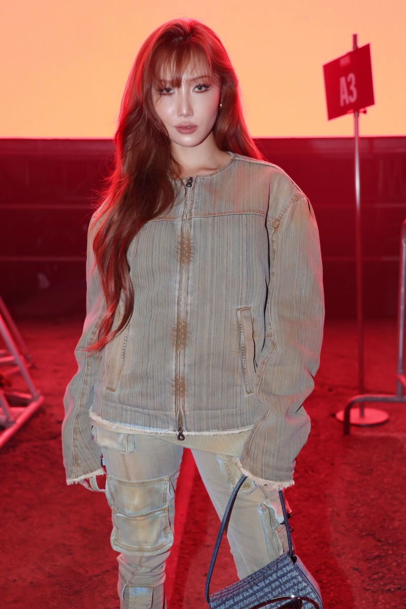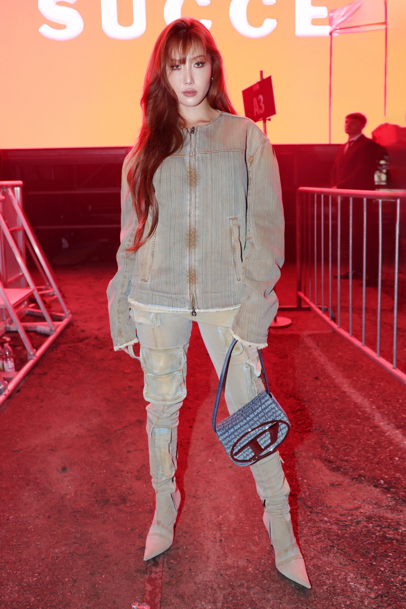 이날 화사는 디젤의 시그니처인 데님 소재의 빈티지하면서도 시크한 룩으로 등장해 이목을 집중시켰다