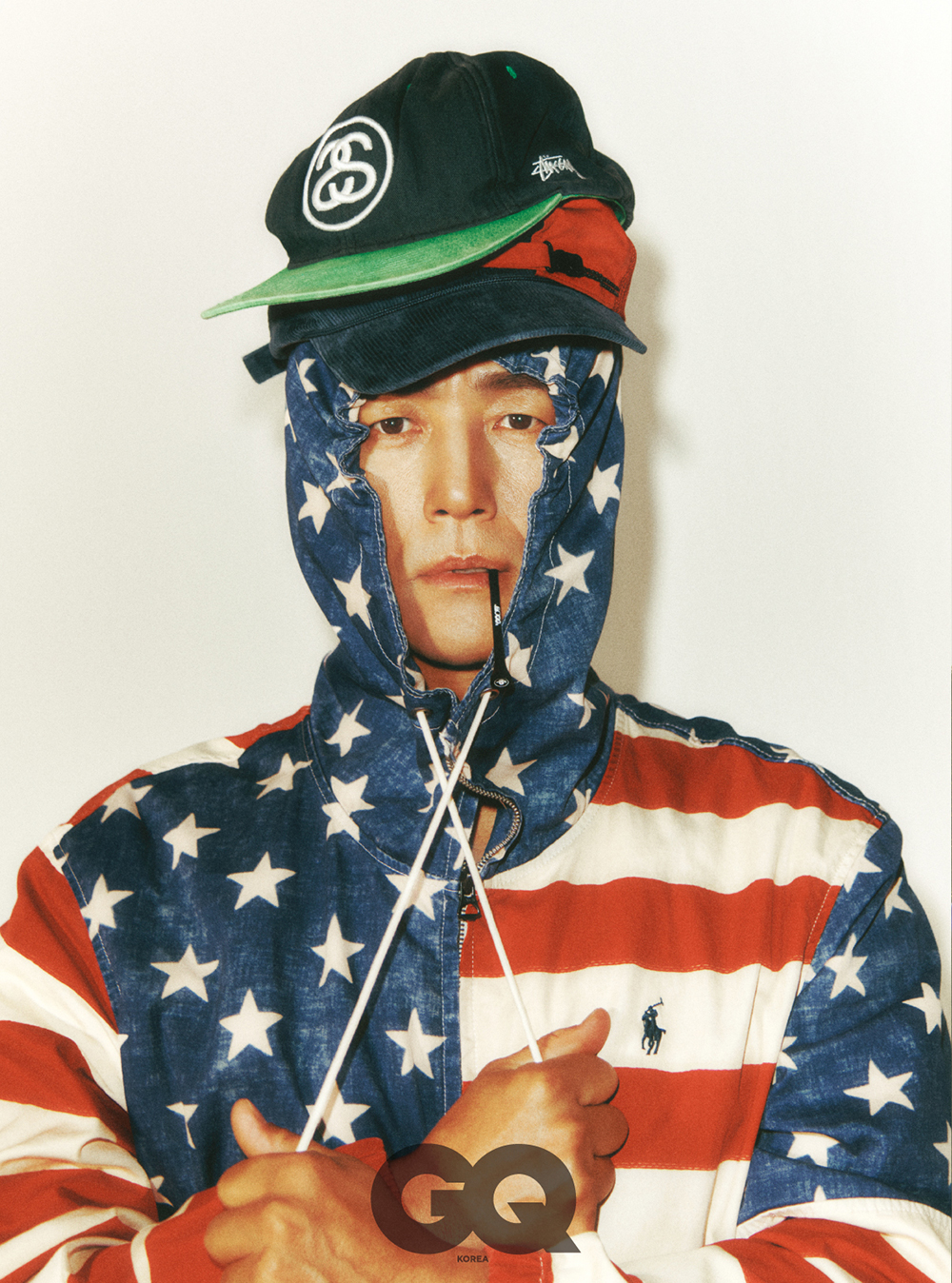 겹겹이 쌓은 모자와 후디 재킷으로 위트 있는 룩을 선보이는가 하면