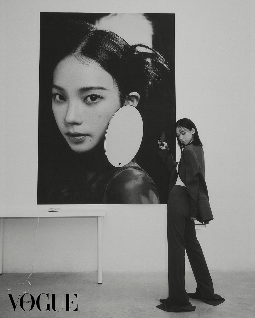 이 외에도 그녀는 가을 시즌 빠질 수 없는 수트룩으로 자신의 화보 앞에서 사진을 찍는 듯한 포즈를 취하며 평소 털털한 성격과는 다른 시크한 매력을 보여주었다
