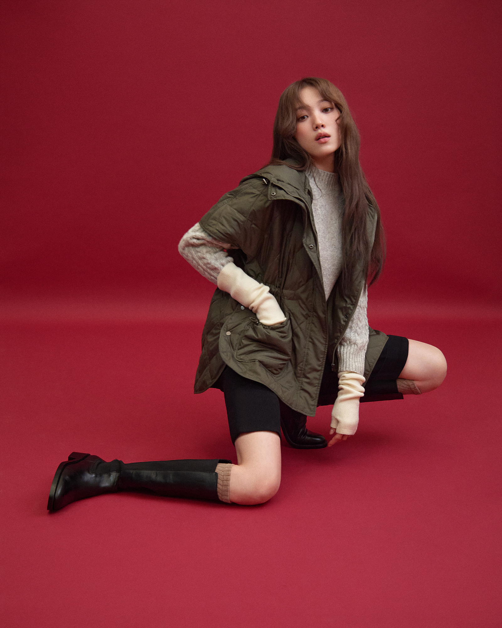 따뜻하고 포근한 겨울 스타일링을 선보였다