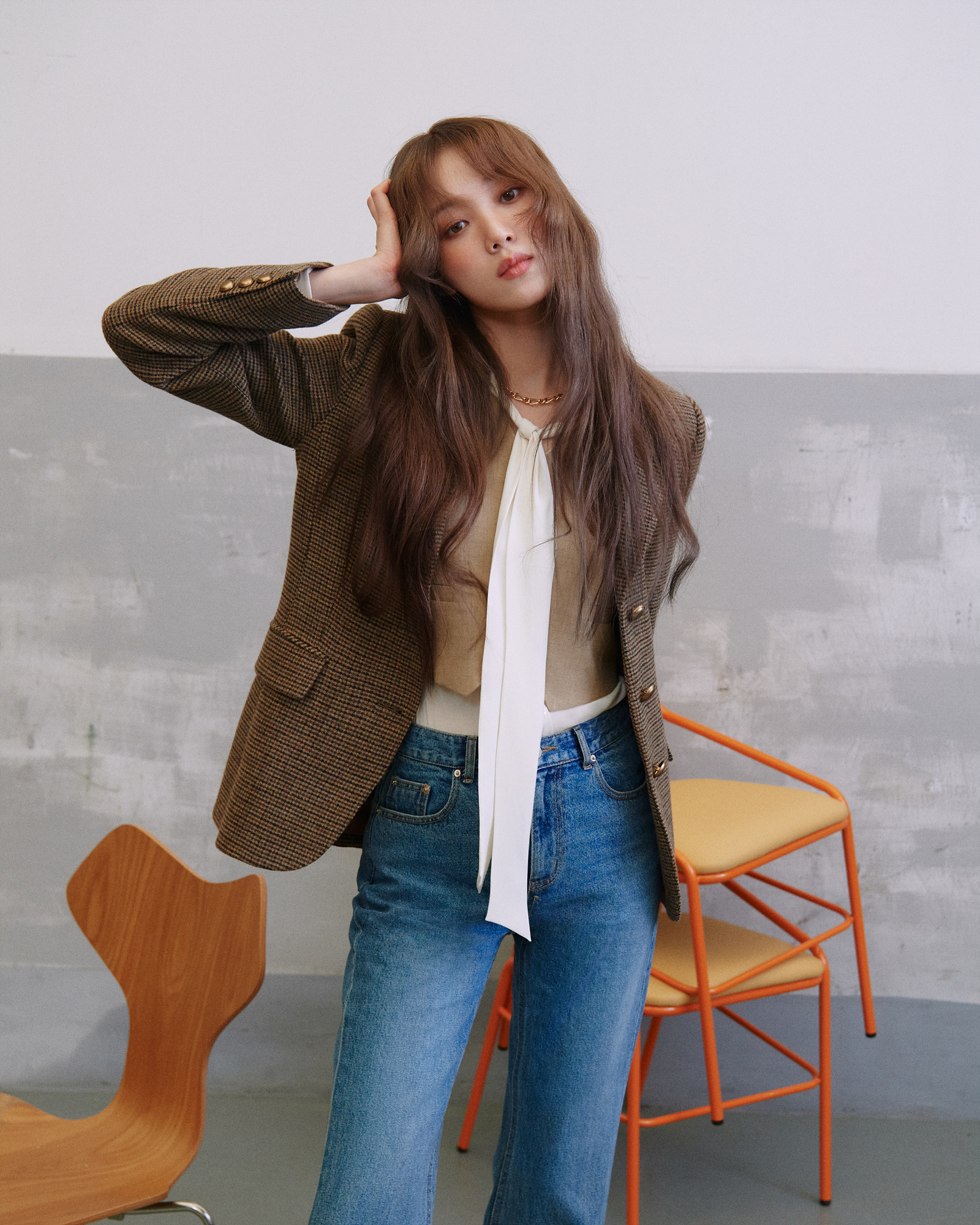 화보 속 이성경은 체크 자켓으로 클래식한 매력을 뽐내는가 하면