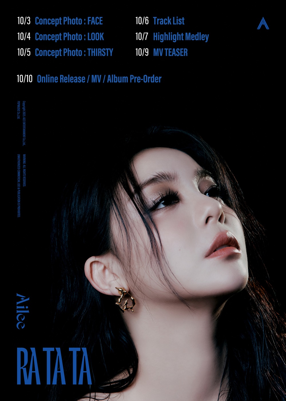 A2Z엔터테인먼트(팝뮤직)는 지난 1일 공식 SNS 채널을 통해 에일리의 새 앨범 스포일러 이미지를 공개하며 컴백을 공식화했다. 2일에는 신보명 ‘RA TA TA(라 타 타)’를 공개함과 동시에 스케줄러를 오픈하며 팬들의 기대감을 자아냈다.