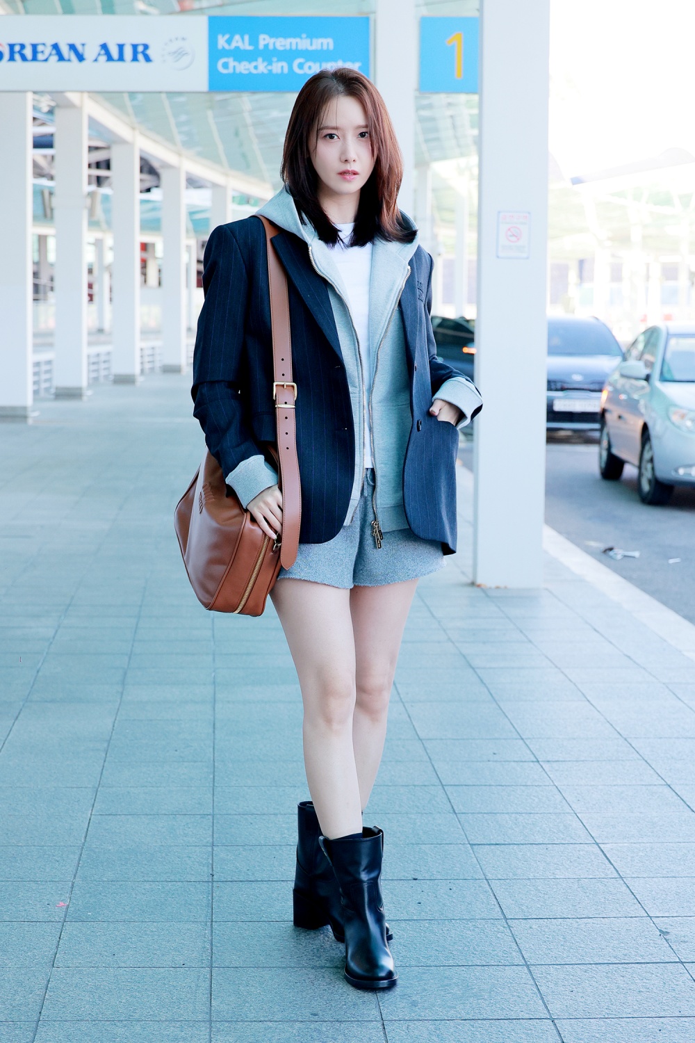 이날 윤아는 시나몬 컬러의 울 셋업 스타일링에 같은 컬러의 아르카디 백을 매치해 화사한 패션을 선보였으며