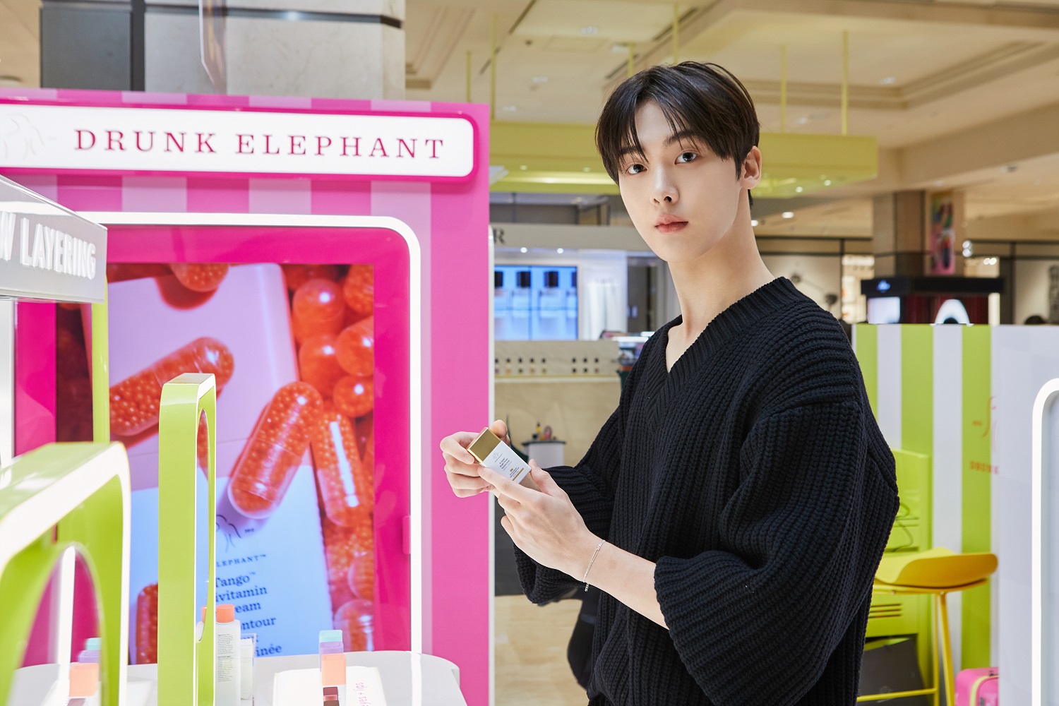 국내 첫 매장 오픈을 축하하기 위해 그룹 아스트로의 산하가 현장을 방문했다