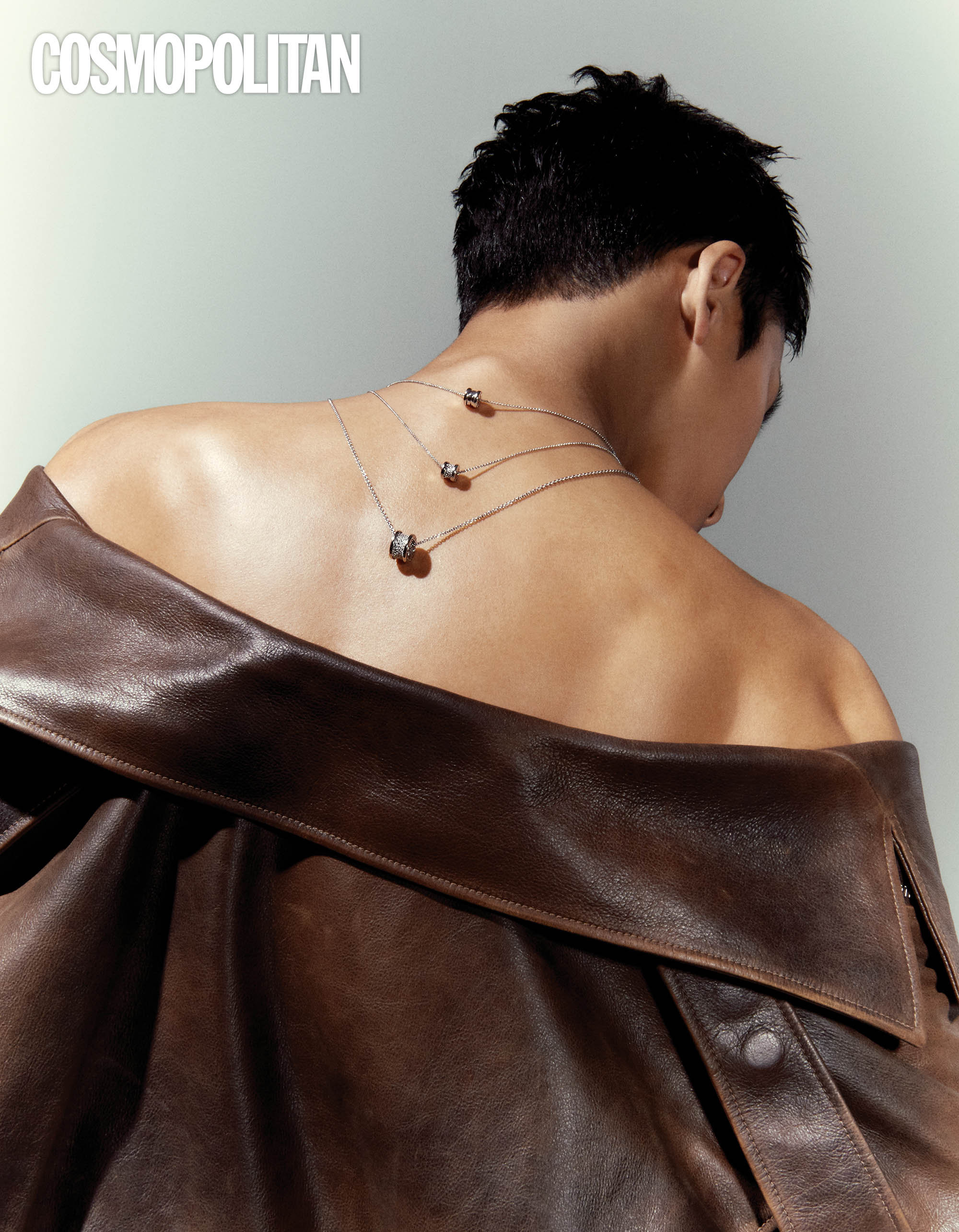 조각 같은 얼굴이 돋보이는 시원스럽게 자른 짧은 머리에 탄탄한 몸을 드러낸 민규는 불가리 주얼리와 워치를 착용한 채 아찔한 관능미를 선보였다