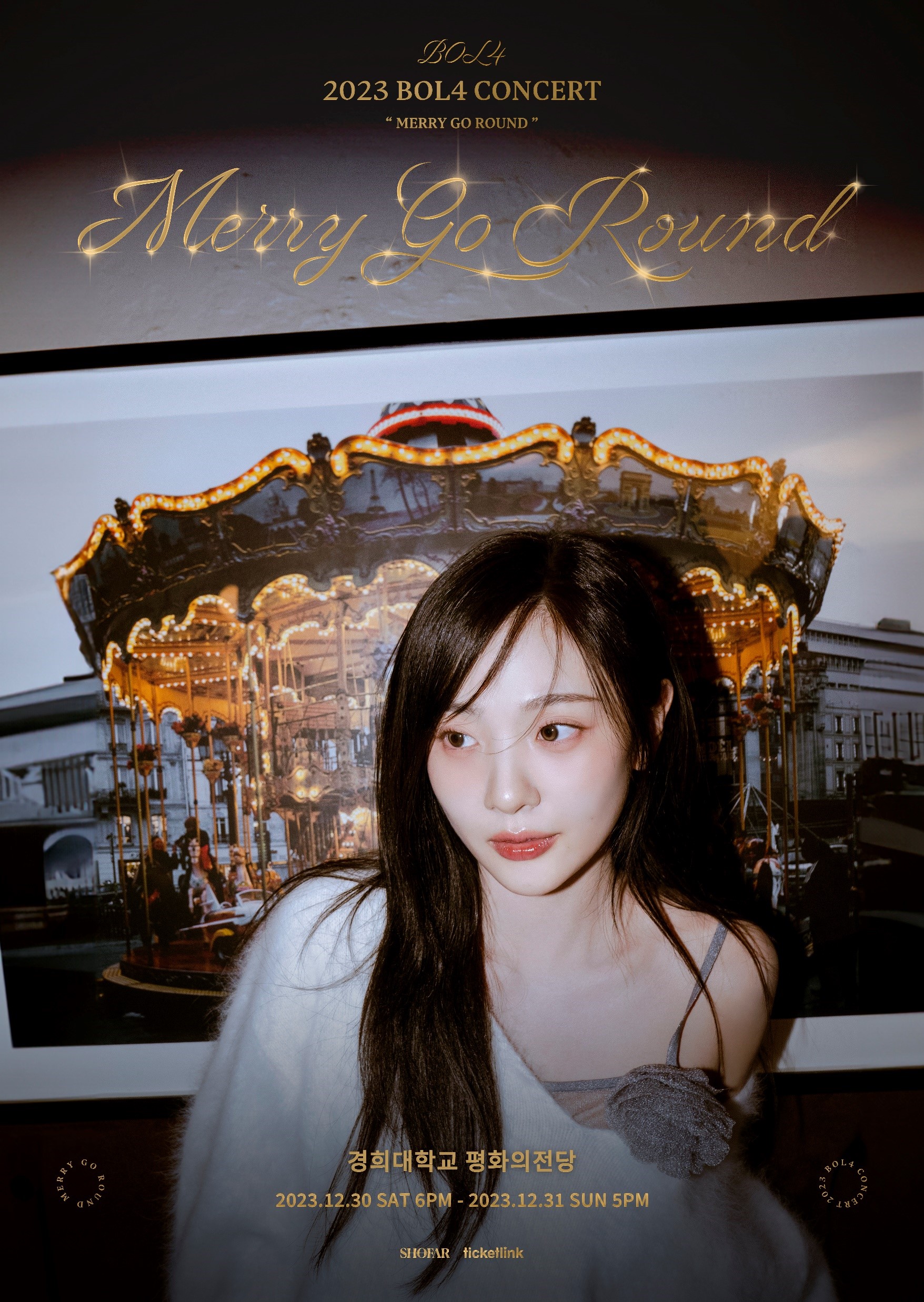 배경 속 회전목마 액자는 화려하면서도 포근한 분위기를 연출