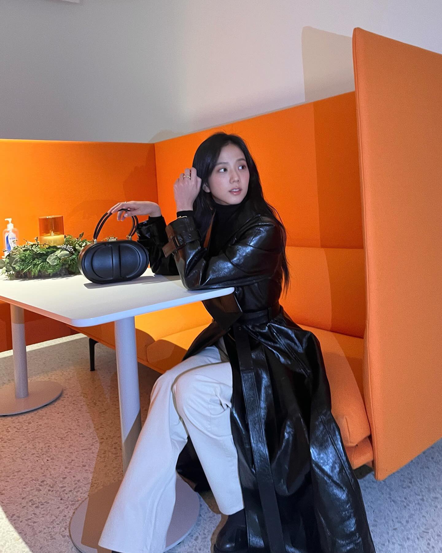 사진에서 지수는 오렌지 컬러의 소파에 앉아 시크한 분위기의 가죽 롱 코트를 완벽하게 소화하고 있는 모습이다. 또한 그는 코트로 잘록한 허리를 강조하는가 하면 사랑스러운 표정을 짓는 등 독보적인 미모로 감탄을 자아낸다.