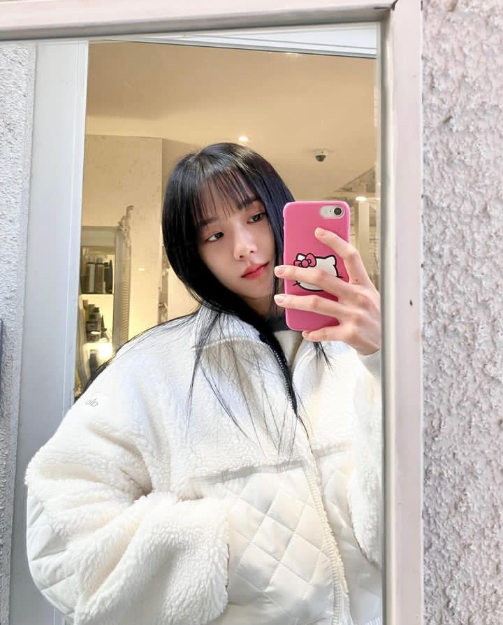 공개된 사진 속 지수는 오버핏 화이트 봄버 재킷을 입고 거울 셀카를 찍어 팬들에게 근황을 전했다. 지수는 평소 자신이 좋아하는 캐릭터가 그려진 폰케이스로 귀여운 매력을 발산했다. 지수는 특유의 청순가련미를 자아내 감탄을 불러일으켰다.