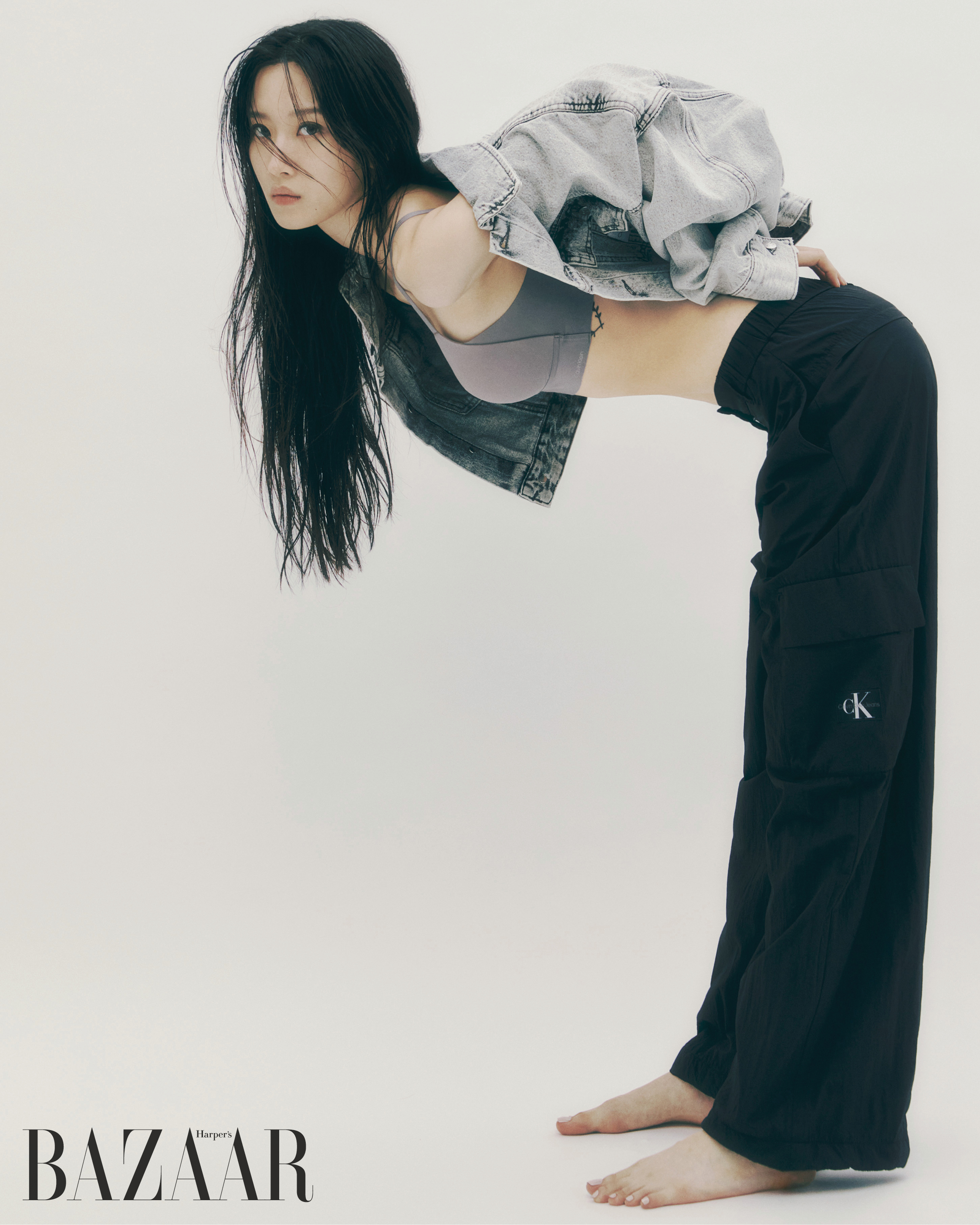 문가영이 캘빈클라인의 아이코닉한 데님 셋업과 함께 착용한