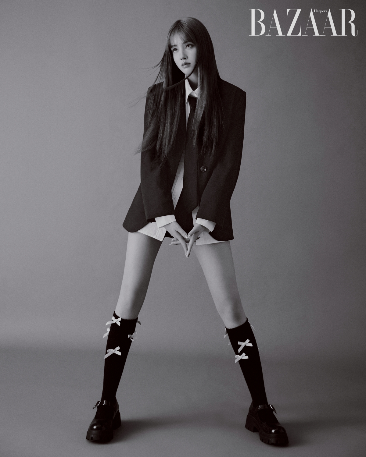 이란 콘셉트에 걸맞은 블랙 스쿨룩을 소화하며 지금까지 선보인 청량한 틴프레시와는 또 다른 느낌의 반전 매력을 선사했다