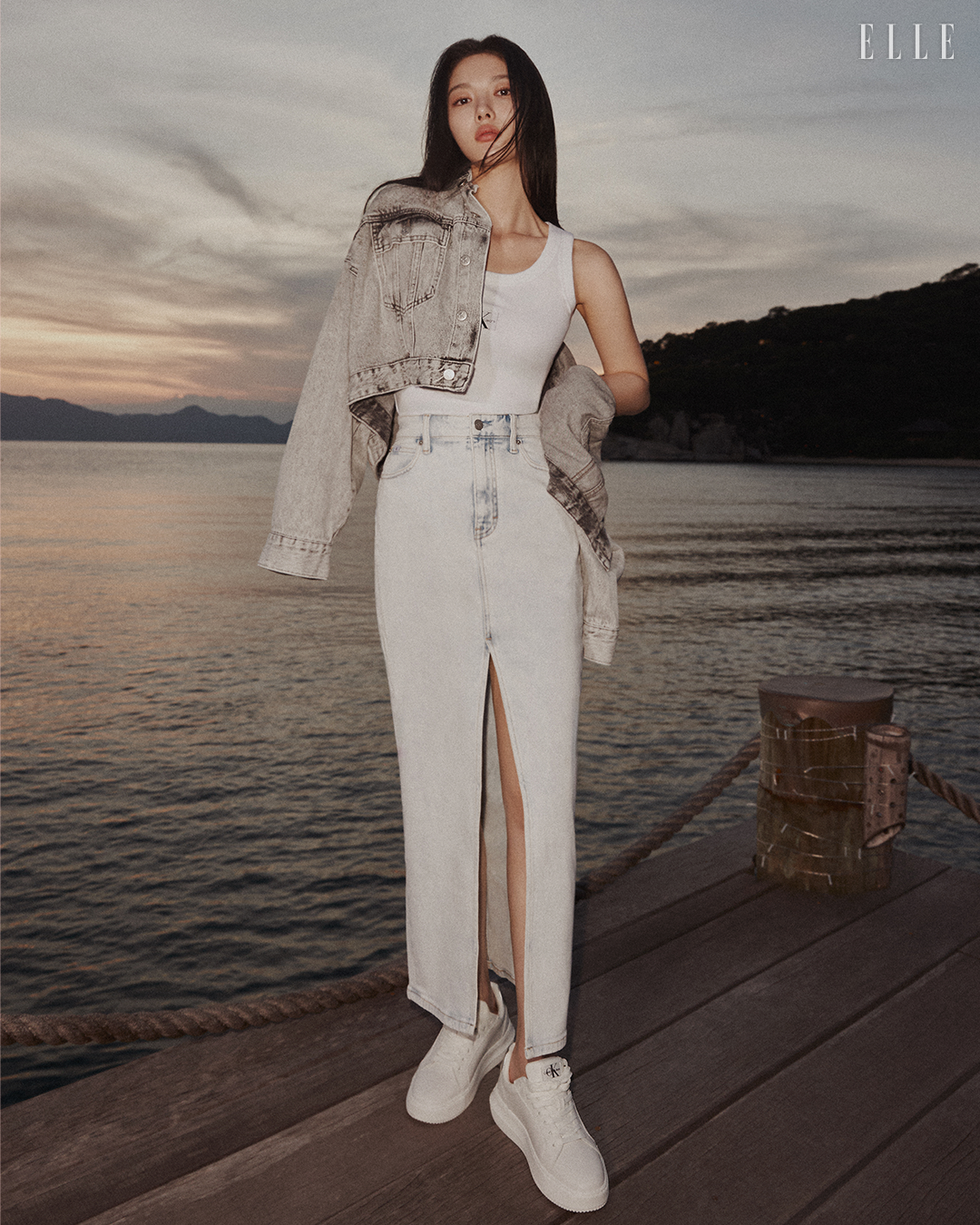 는 데님 셋업과 함께 착용하여 캘빈클라인의 아이코닉한 무드가 배가 되었으며