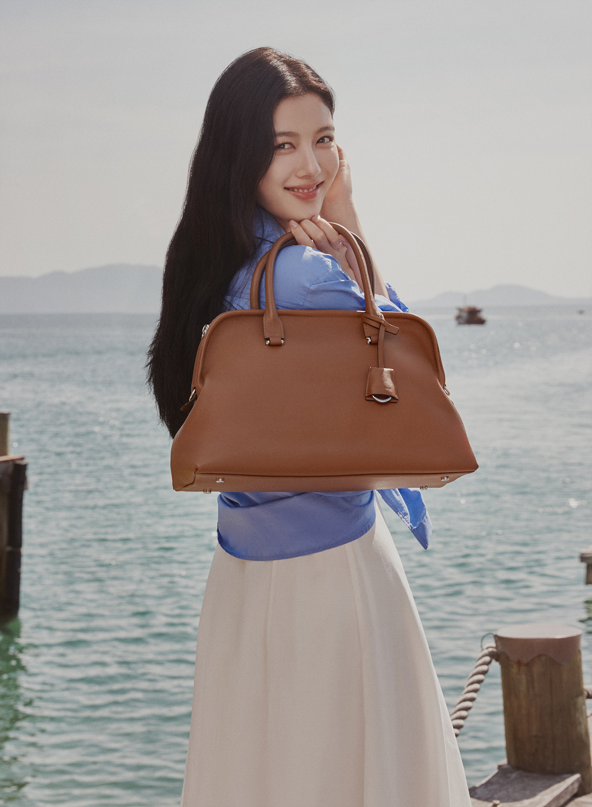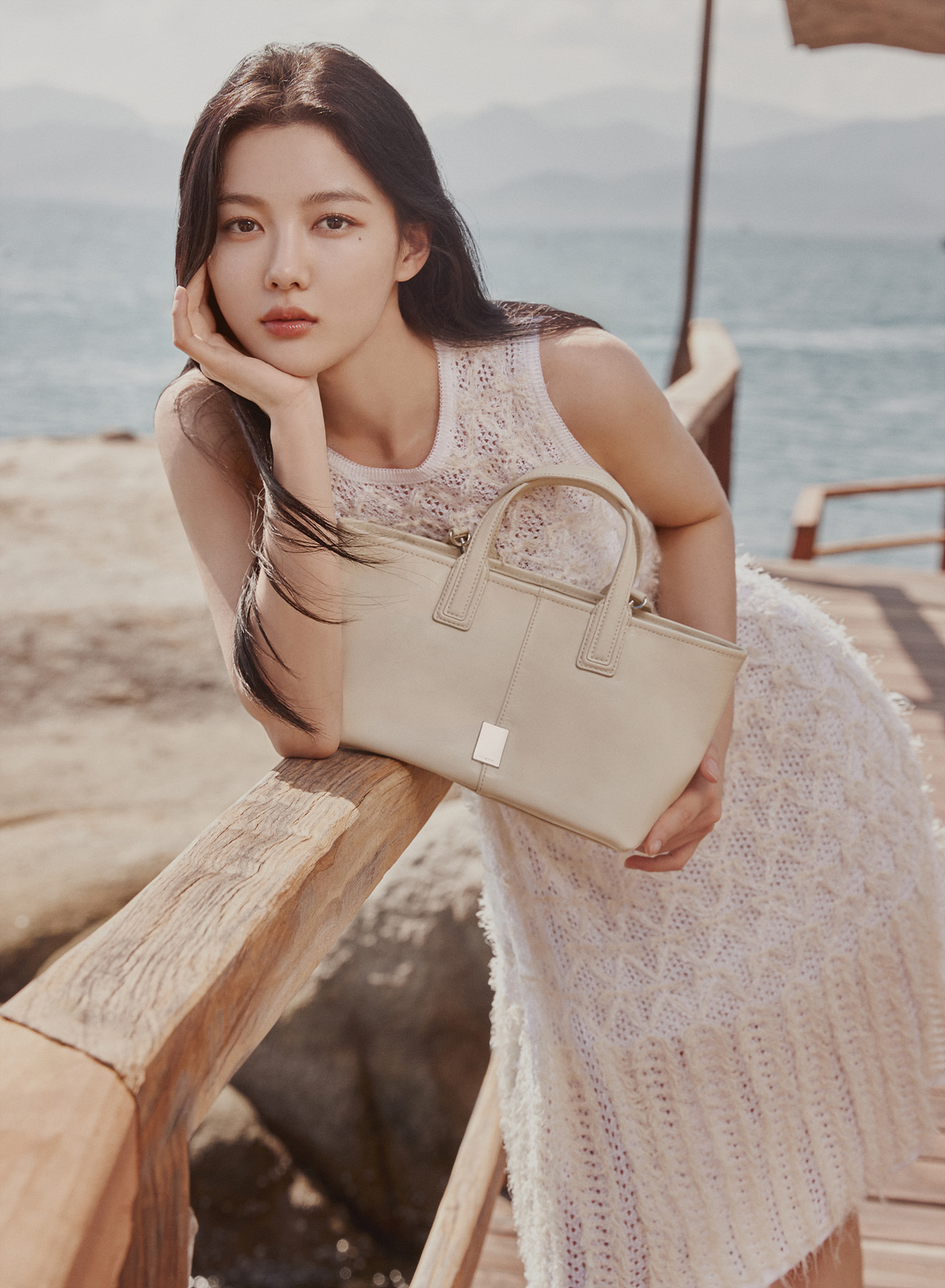 또 다른 사진에서 김유정은 청량한 바다를 배경으로 은은한 테슬 디테일 원피스의 페미닌한 룩에는 캐주얼한 토트백을 각각 매치하여 특유의 사랑스러운 매력을 면모를 여과 없이 보여준다