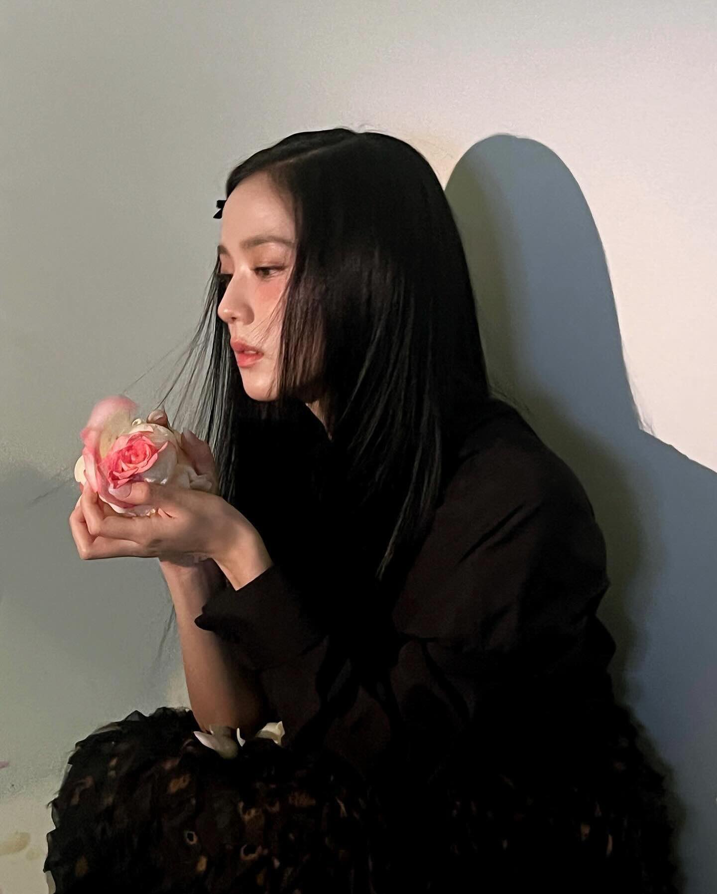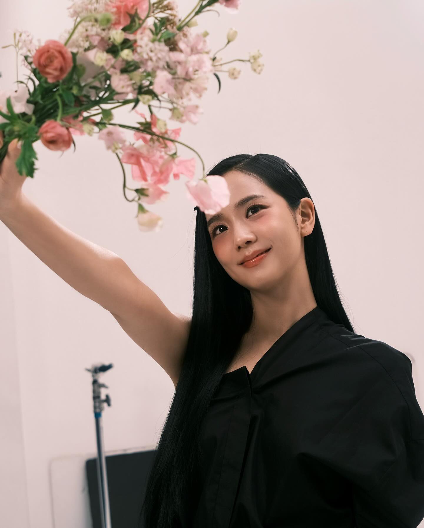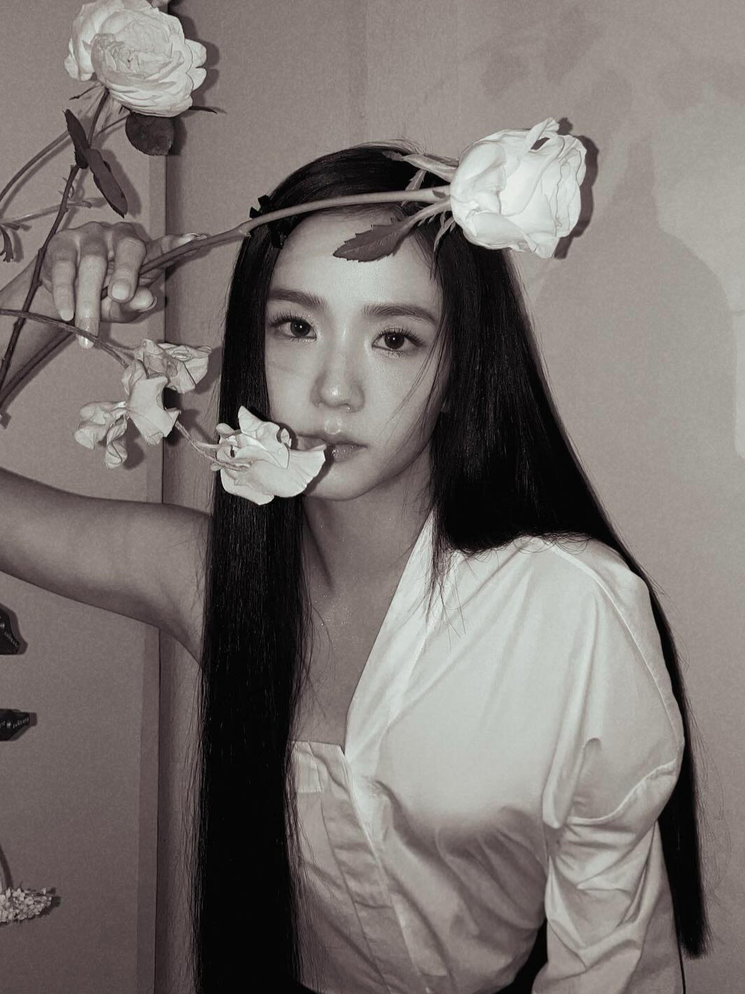 공개된 사진에는 지수가 한쪽 어깨를 드러내는 블라우스를 입고 꽃을 들고 포즈를 취한 모습이 담겼다. 블러셔로 볼을 빨갛게 물들인 지수는 고혹적인 모습으로 독보적인 비주얼을 발산해 시선을 사로잡는다.