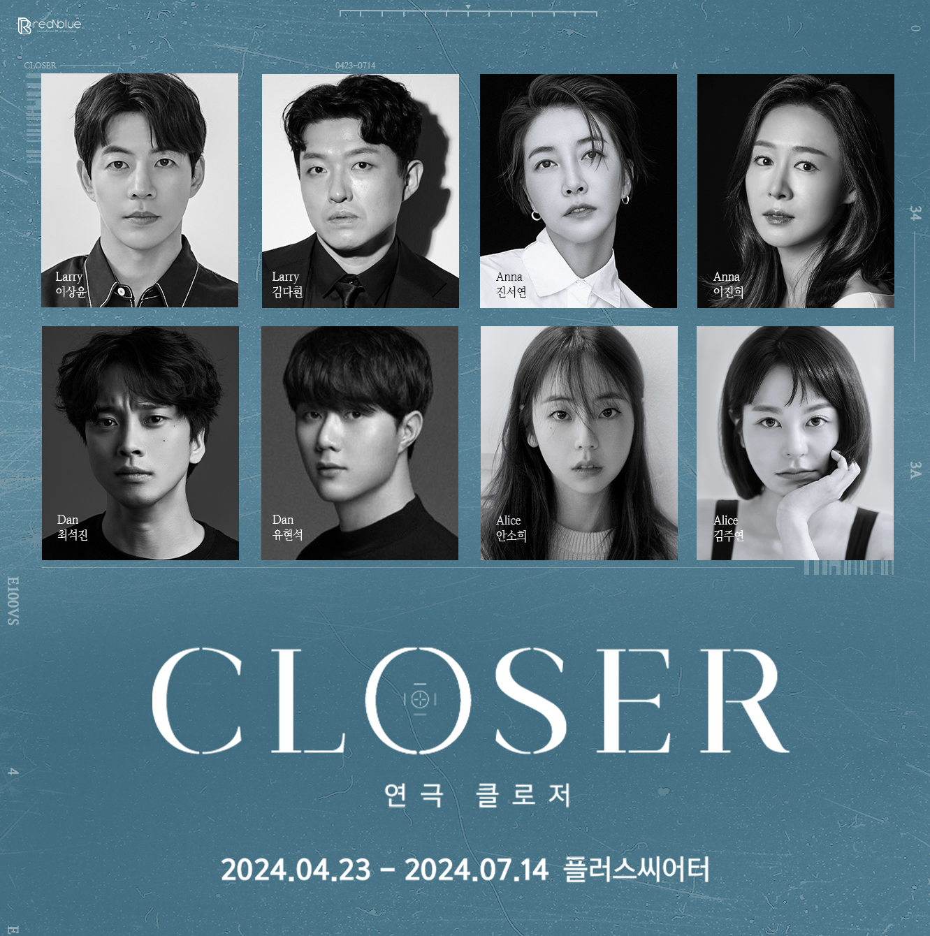 ㈜레드앤블루가 8년만에 돌아오는 웰메이드 연극 <클로저>의 캐스팅과 티저 포스터를 공개했다.