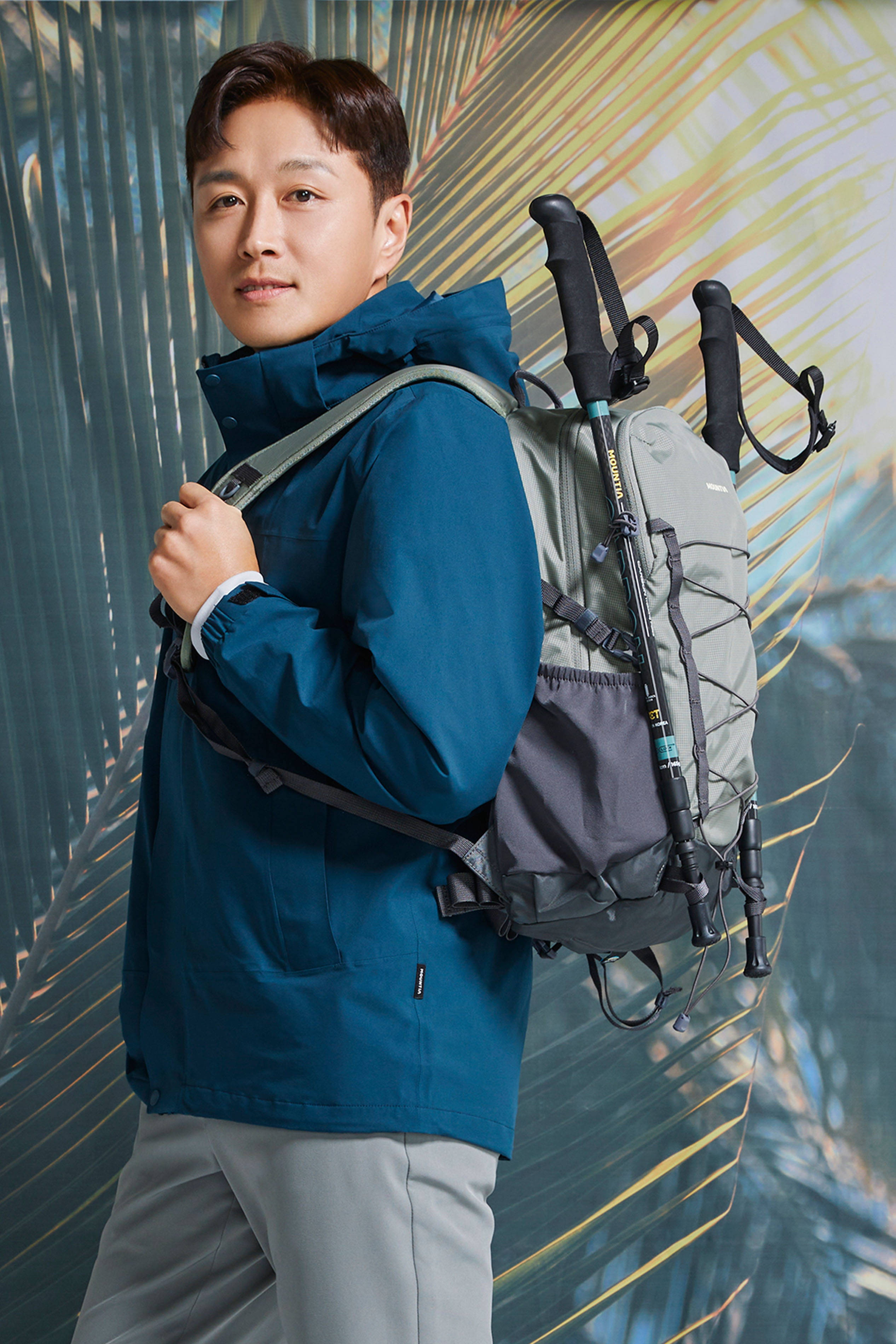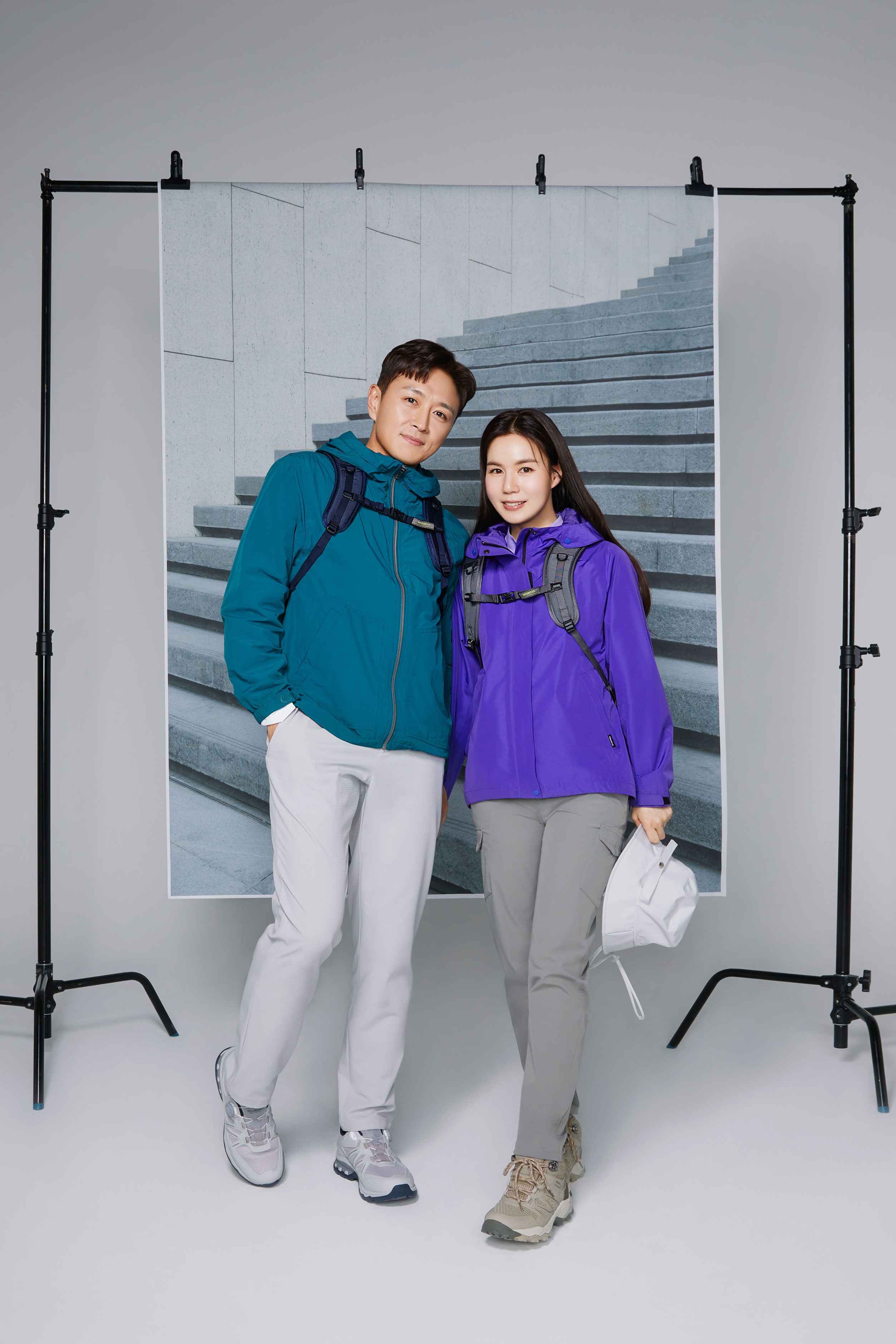 커플 아웃도어 룩을 자연스럽게 소화했다