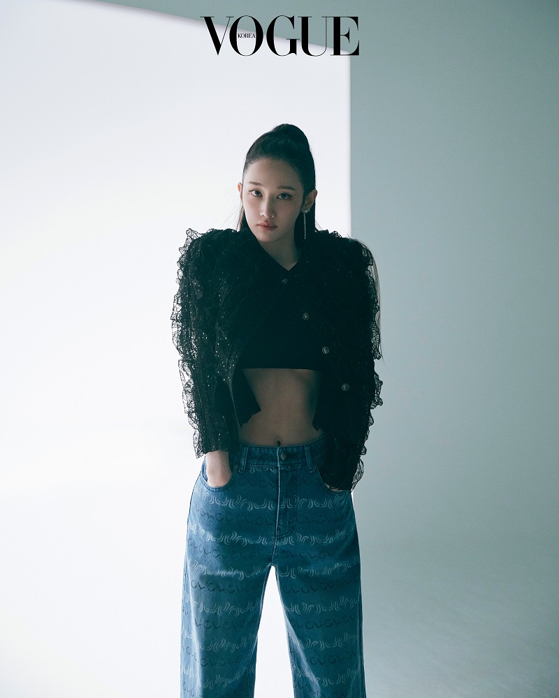 레이스 소재의 팬츠와 자켓 등 페미닌한 실루엣이 돋보이는 제품을 그녀가 가진 매력으로 소화해 내며 완성도를 높였다