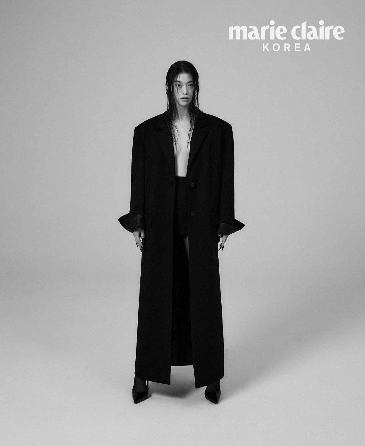 공개된 화보 컷에서 정이서는 긴 생머리부터 텍스처를 살린 웨트한 느낌과 깔끔하게 넘긴 헤어스타일까지 다채로운 변주 속 포인트가 들어간 블랙 수트
