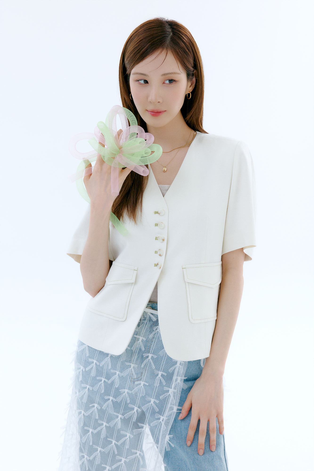 평소에도 긍정적이고 밝은 모습의 뮤즈 서현과 더엣지의 여름 컬렉션이 만나 한층 더 기분 좋은 무드를 자아냈다