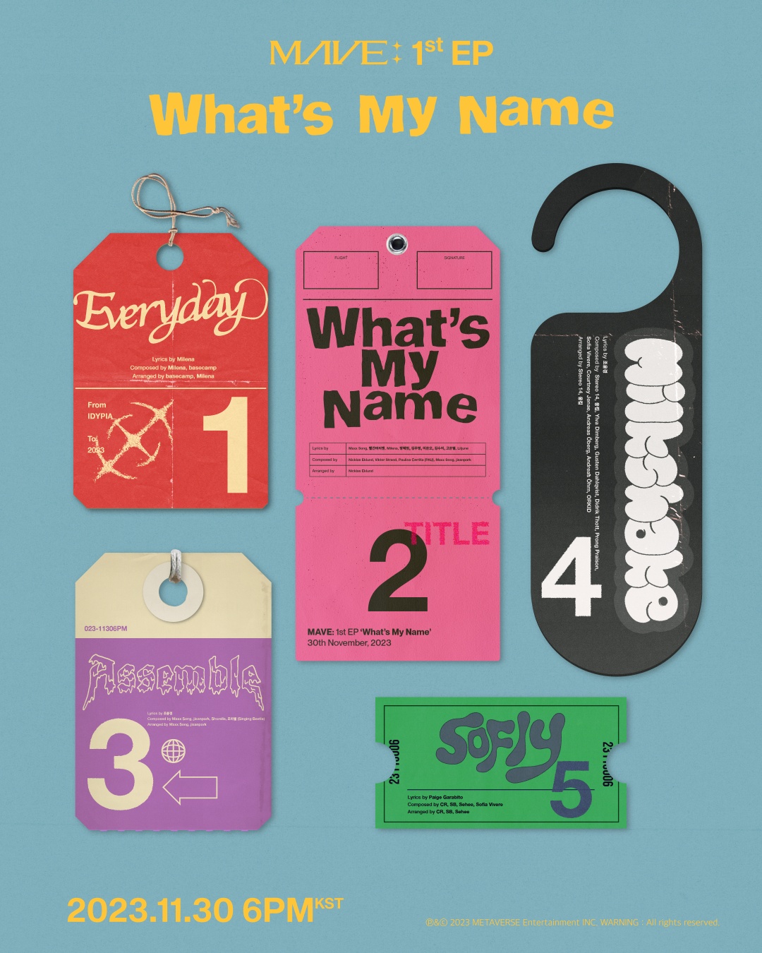 5세대 프리미엄 걸그룹 MAVE: (메이브)가 감각적인 트랙리스트를 선보였다. MAVE: (메이브, 시우·제나·타이라·마티)는 지난 15일 오후 공식 SNS와 웹사이트를 통해 첫 번째 EP 앨범 ‘What’s My Name'(왓츠 마이 네임)의 트랙리스트를 공개했다. 이에 따르면, 이번 EP에는 동명의 타이틀곡 ‘What’s My Name’을 포함해 ‘Everyday'(에브리데이), ‘Assemble'(어셈블), ‘Milkshake'(밀크셰이크), ‘So Fly'(소 플라이)까지 총 5곡이 수록된다. 트랙리스트에는 5곡의 곡명이 각각 다른 폰트로 담겨 … Read more